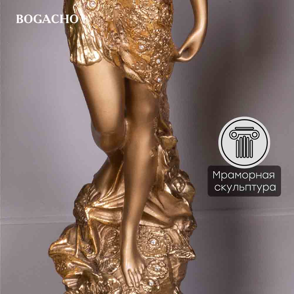 Материалы изготовления и размеры изделияИзделие производится из высококачественного коелгинского мрамора, который привозится в виде мраморной крошки, затем отливается вручную и подвергается дополнительной обработке — патинированию и золочению поталью.