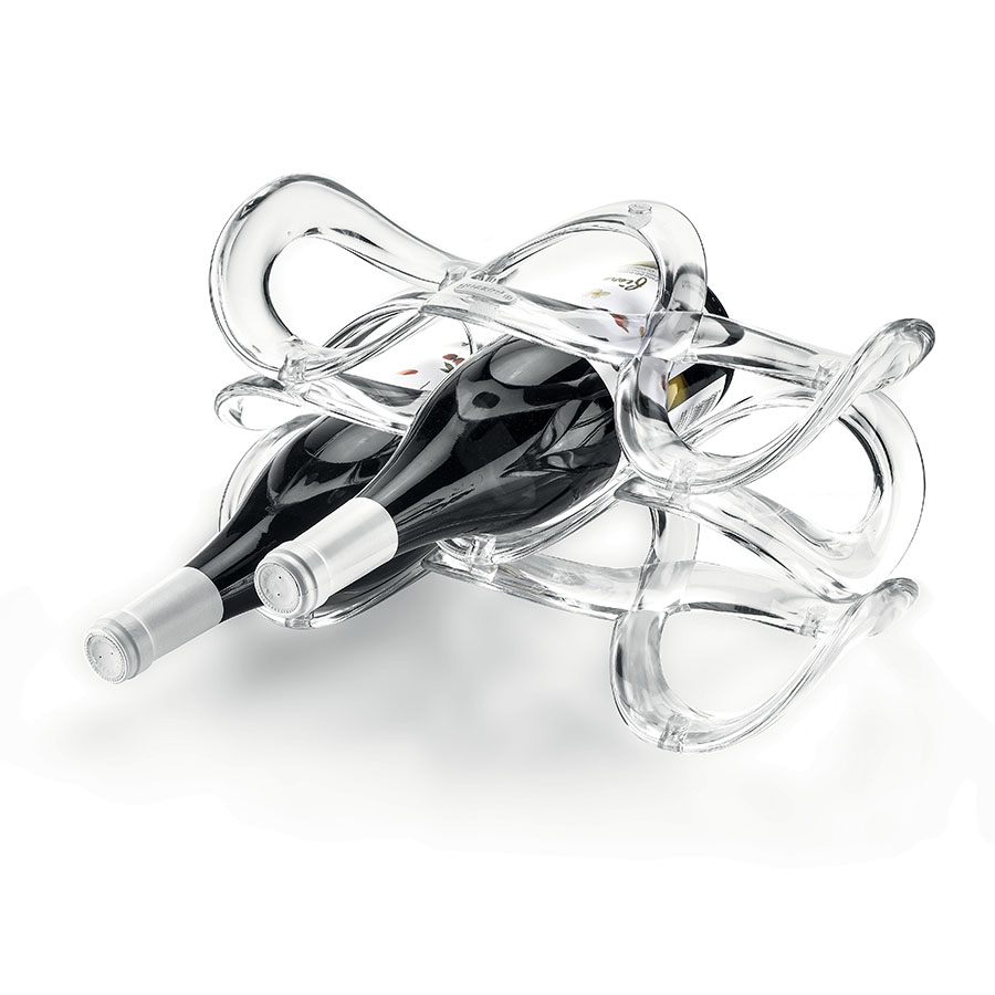 Стильная подставка для бутылок Cuvee станет оригинальным украшением гостиной, кухни или кабинета. Хранение вина в горизонтальном положении – это наиболее правильное решение, поскольку напиток соприкасается с пробкой и не дает ей высохнуть. Подставка выполнена в элегантном дизайне и рассчитана на хранение пяти бутылок. Несмотря на вместительность, она компактна и займет мало места на столе, комоде или полке. Аксессуар изготовлен из высококачественного полимерного материала SMMA. Благодаря этому конструкция отличается прочностью и стойкостью к большим нагрузкам.
