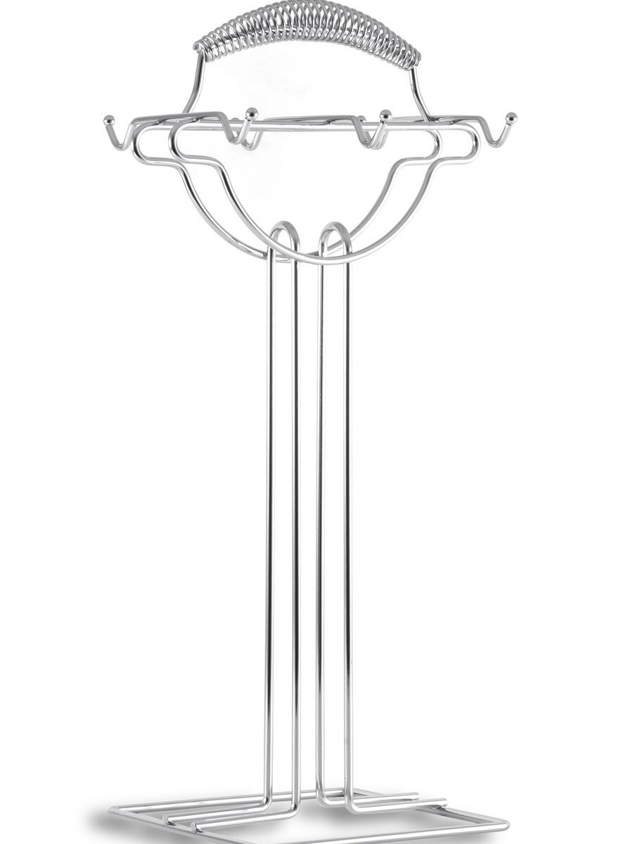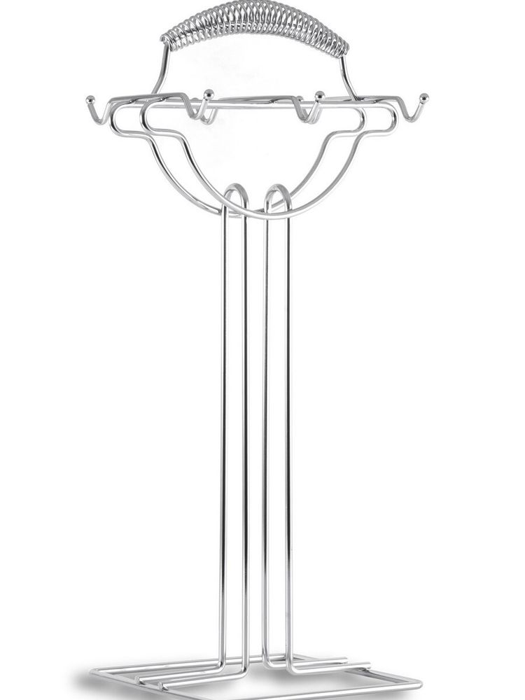 Подставка для кухонных аксессуаров GIPFEL 5189. Размер 18,5х15х41см. Сделана их хромированной углеродистой стали. Подставка выполнена в минималистичном дизайне и имеет стальной цвет, что позволяет ей сочетаться с любыми аксессуарами. У подставки 6 крючков для подвешивания, по 3 с каждой стороны. Ручка большая и удобная, стилизованная под металлическую пружину. У подставки большое основание, что придает ей устойчивости.