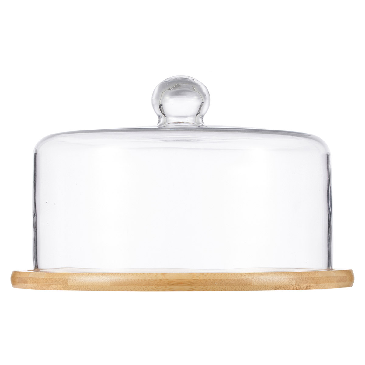 Тортовница с крышкой в виде купола изготовлена из прозрачного стекла, прочного и устойчивого к царапинам, безопасного для здоровья, не впитывающего посторонние запахи и простого в уходе.