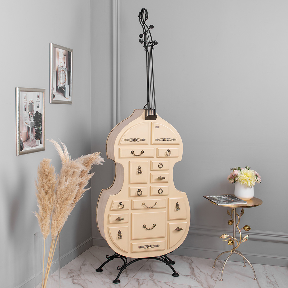 Яркая нотаПодставка «Контрабас-Комод» - удивительный, уникальный предмет мебели. Он способен вписаться в любой интерьер, будь то классические варианты или современные форматы. Яркая нотка, которая, при правильном подходе, обязательно зазвучит в гармонии со всем остальным интерьерным ансамблем. И эта музыка будет прекрасна! Контрабас - дорогой инструмент. Он находится в одном логическом и ассоциативном ряду с черными смокингами, элитными машинами, блеском бриллиантов и запахом дорогих сигар. Под стать всему этому выглядят интерьеры, где свою важную роль играет контрабас BOGACHO. Здесь роскошь соседствует с изысканностью, а утонченность с оригинальностью и эксклюзивностью.