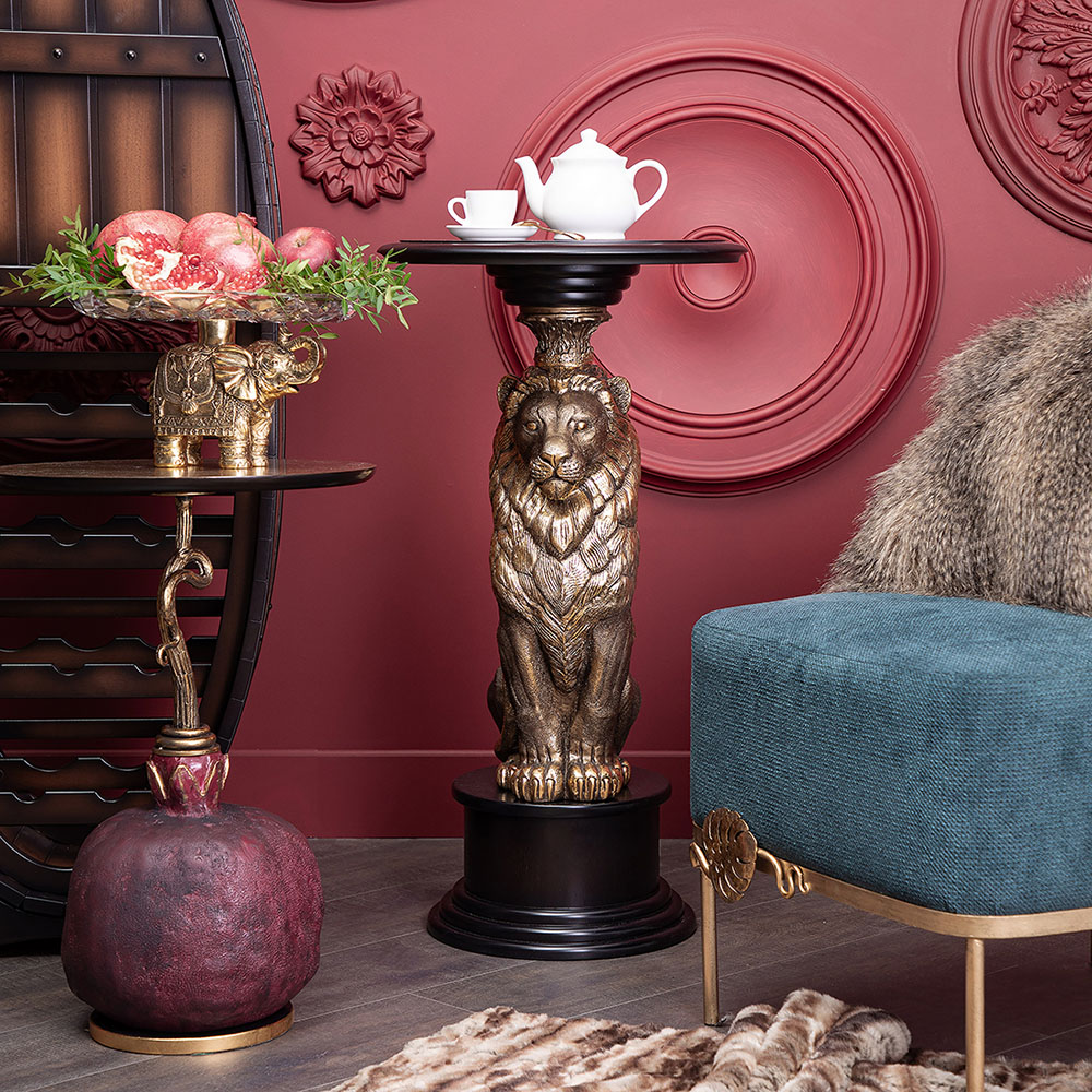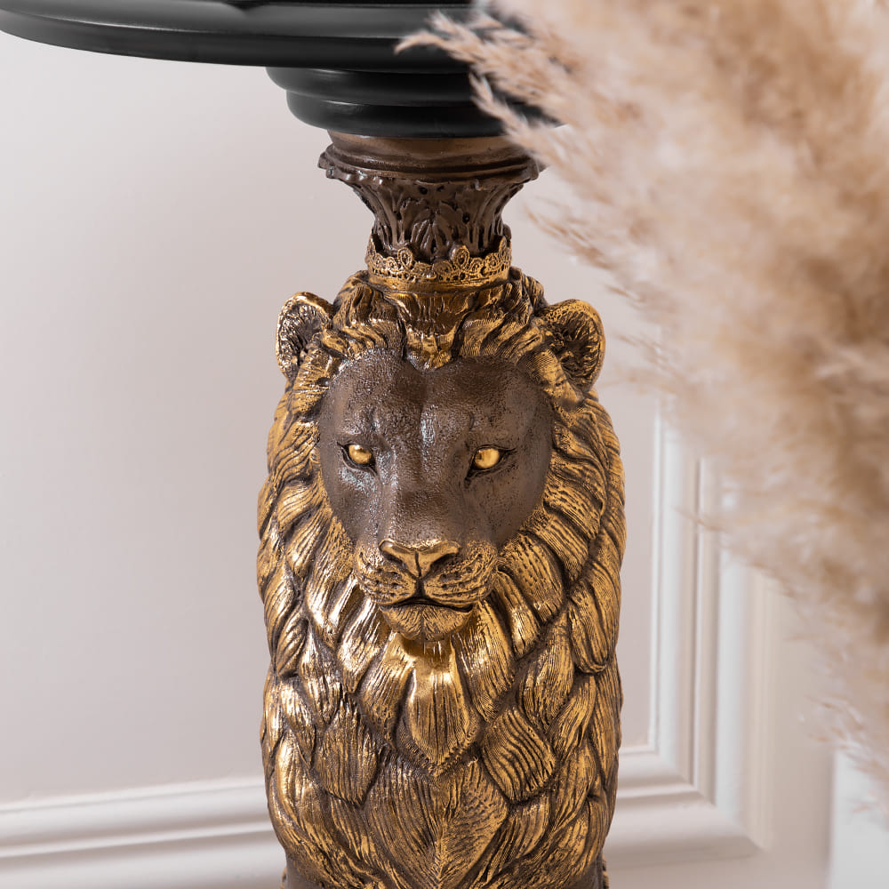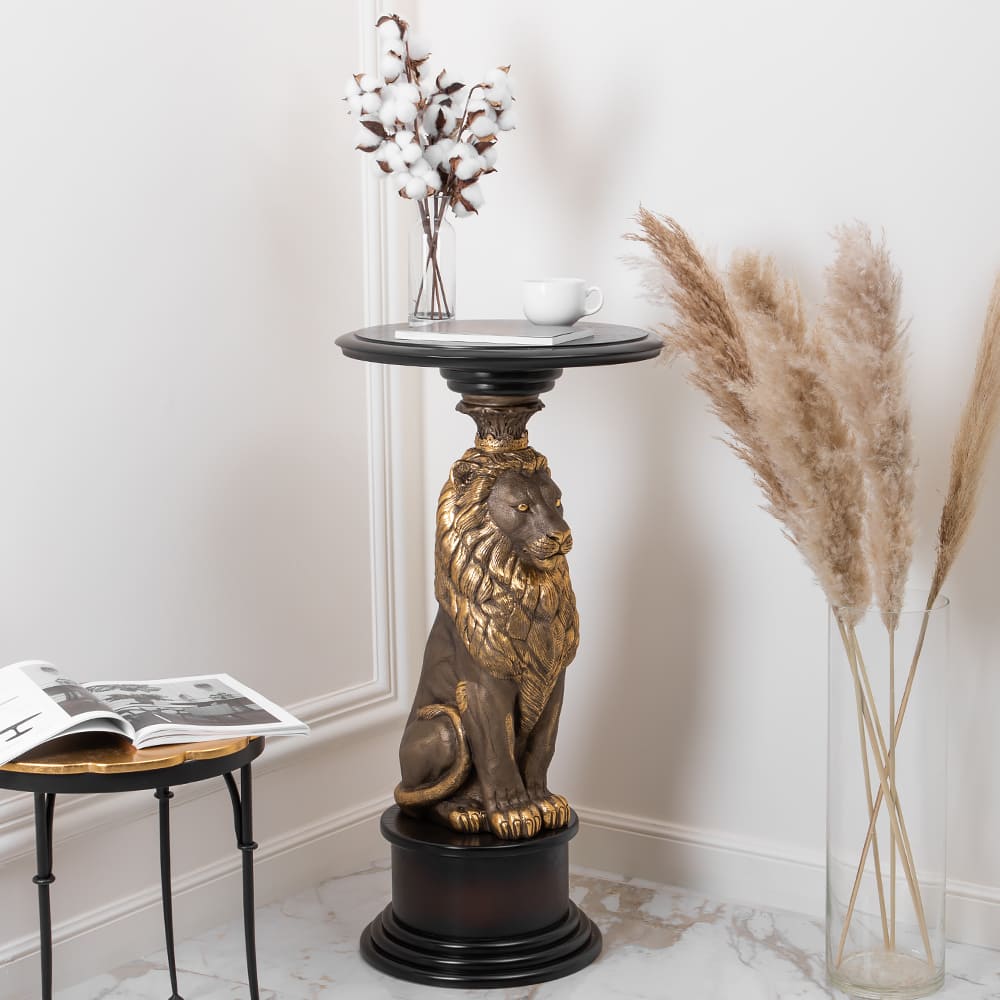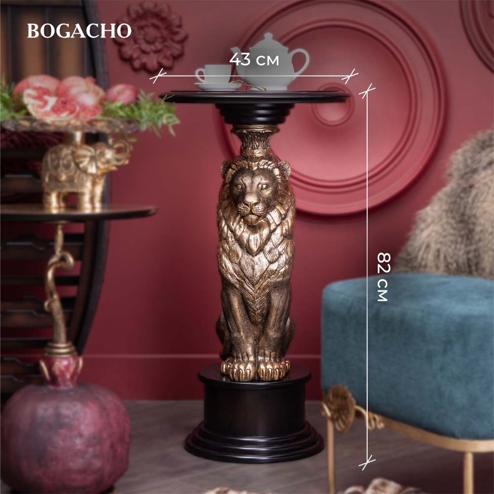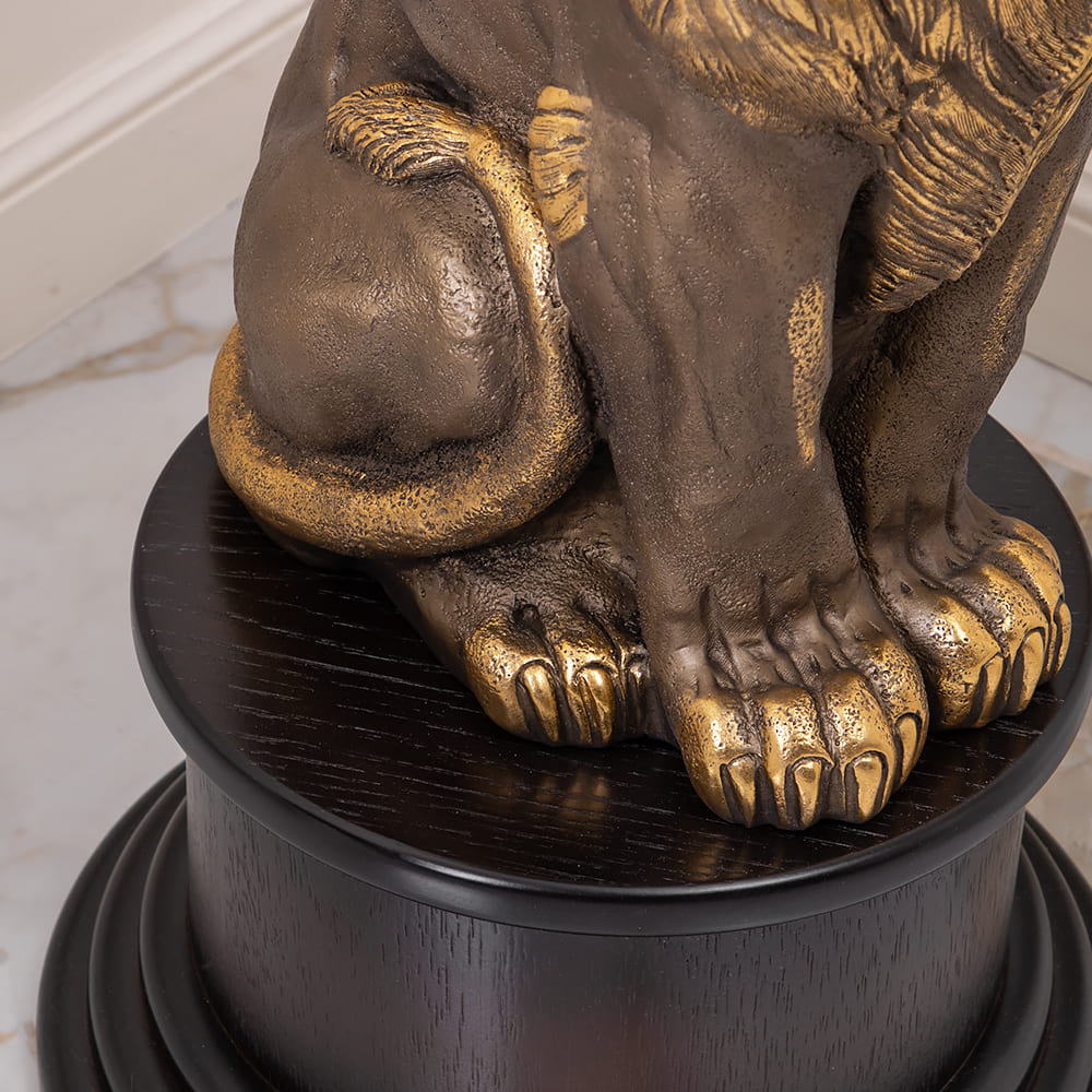 Надежность. Устойчивость. Солидность и торжественностьИменно так можно описать подставку «Лион», ведь она создана для сильных и великодушных людей, которые ценят качественную и оригинальную мебель. Благородный лев является опорой для столешницы из плитного материала Мдф, который изготавливается путём спрессовывания древесной крошки под высоким давлением, благодаря чему изделие очень прочное и лёгкое. Поверхность шпонирована натуральным деревом дуба, тонирована и покрыта лаком. Из этого же материала сделан пьедестал, на котором расположена скульптура. Лев отлит вручную из мрамора высокого качества и окрашен в технике патинирование. Льва принято считать царём зверей, и не просто такВо-первых, его роскошная грива напоминает царскую корону, а взгляд и походка исполнены величия.Во-вторых, смелый и мудрый лев – это глава прайда, он готов брать ответственность за себя и своих соплеменников. Львиное сердце – так говорят про отважных людей, не знающих чувства страха и не боящихся вступиться за близких в любой момент. А ещё Лев – это символ Солнца. Подставка «Лион» будет идеально смотреться в рабочем кабинете, в гостиной или спальне. Что Вы захотите поставить на неё? Любимые книги, памятную вещь, изящную статуэтку или светильник? Любой предмет будет смотреться на подставке «Лион» прекрасно!
