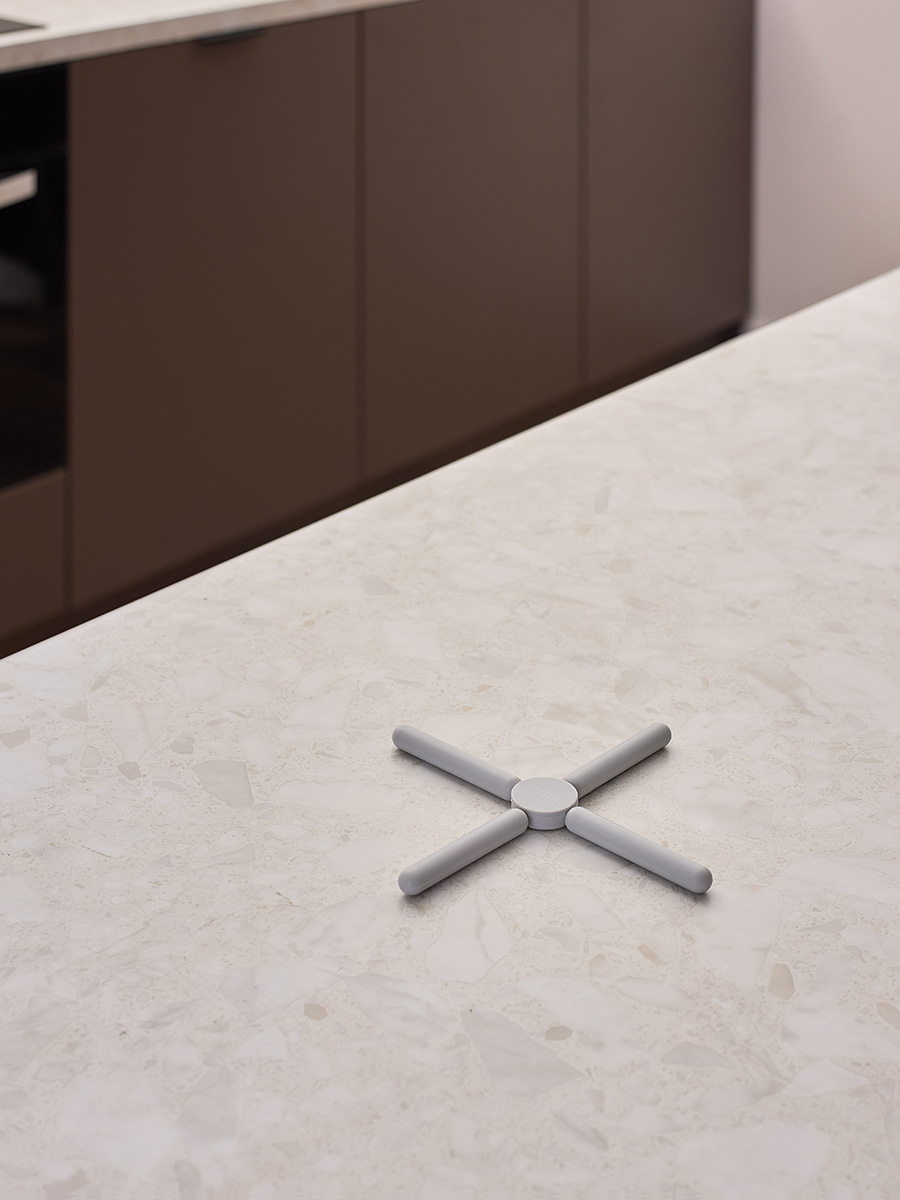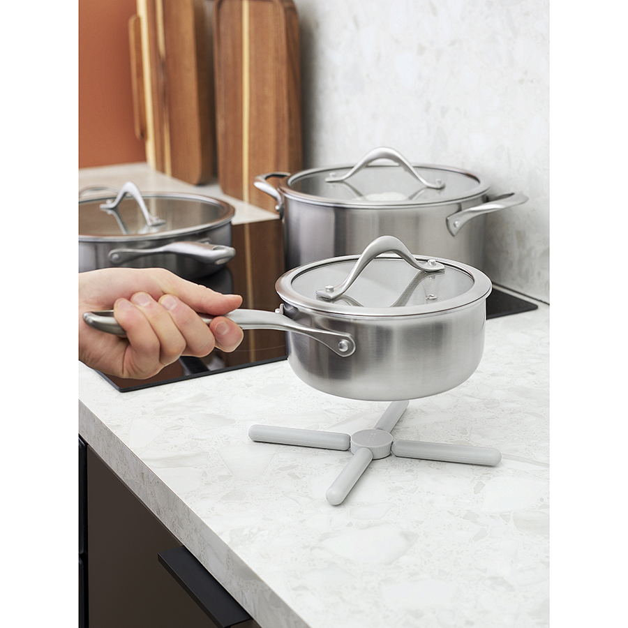 Подставка под горячее Wheel поможет защитить поверхность мебели от воздействия высоких температур и за счет складной конструкции не займет много места на кухне.