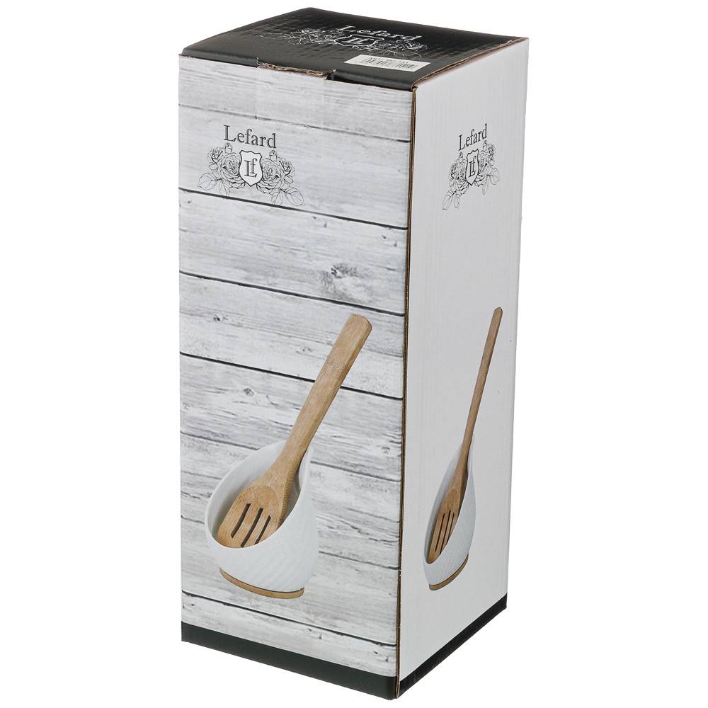 Бамбуковые элементы имеют приятную на ощупь текстуру и являются гармоничным дополнением к белому фарфору. Бамбук с белым – классика для Вашей кухни!