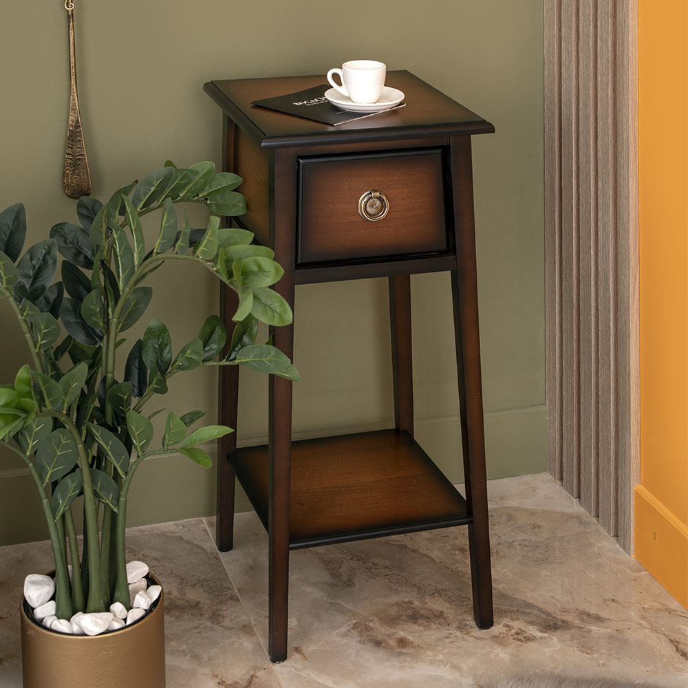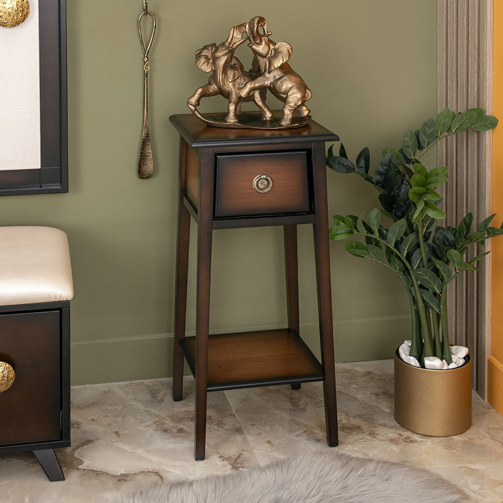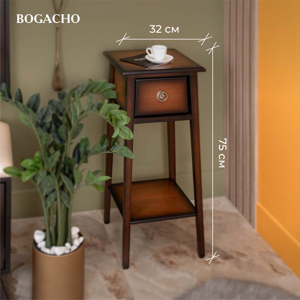 Корпус подставки Жаклин 2 Орех произведён из МДФ. Изделие подойдёт для спальни, гостиной, детской комнаты в качестве прикроватного столика, подставки для светильников или статуэток. Также Вы можете выстроить композицию из подставок разной высоты, что придаст интерьеру особенную «изюминку».