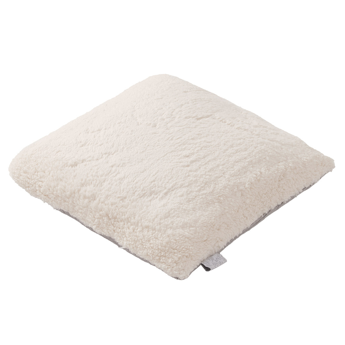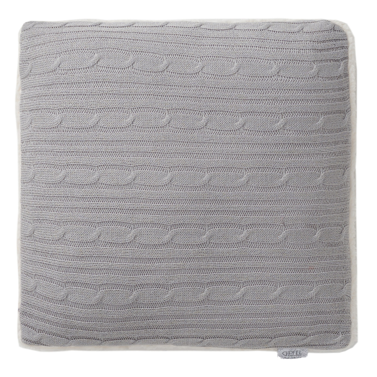 Очарование этой модели придает нежный серый оттенок и рельефный орнамент. С одной стороны подушки как будто пришиты вязаные ленты, а с другой - нежное и мягкое меховое полотно цвета экрю. Такие подушки легко впишутся в современный и классический интерьер.
