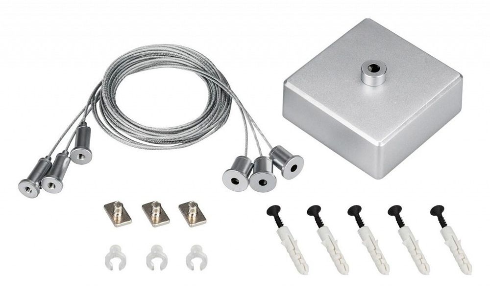 накладная чашка (серебро) - 1шт., трос 2м - 3шт., винт с площадкой 9мм - 2шт