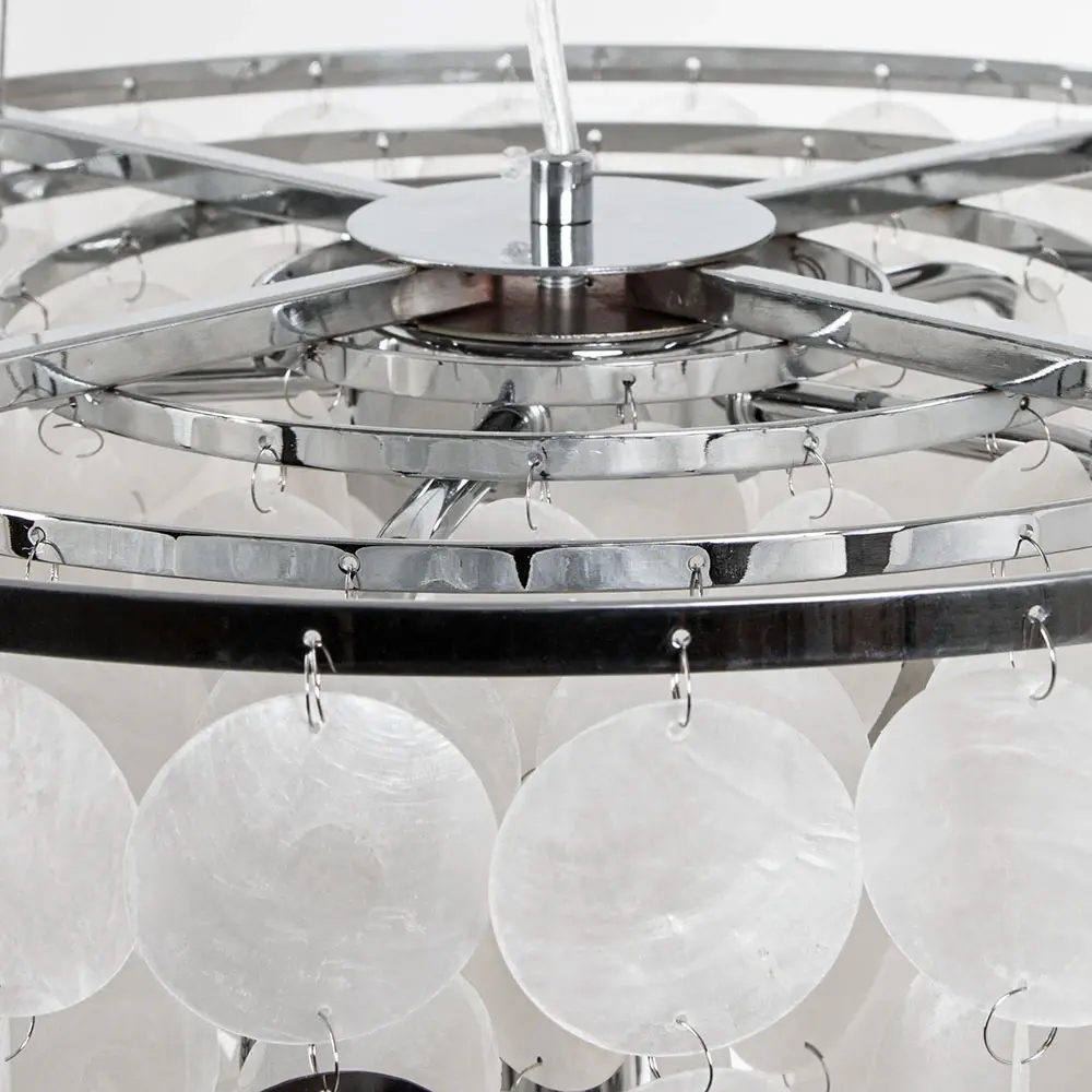 Подвесная люстра Arte Lamp A4100LM-6CC создает элегантную атмосферу в стиле арт-деко. Шесть плафонов из натурального перламутра, мерцающего мягким блеском, направляют свет вниз, обеспечивая комфортное освещение. Прочная металлическая арматура с хромированным покрытием гармонично сочетается с теплым белым оттенком плафонов. Модель монтируется на планку и предназначена для использования с лампами накаливания. Люстра станет изысканным акцентом в интерьере гостиной или столовой.
