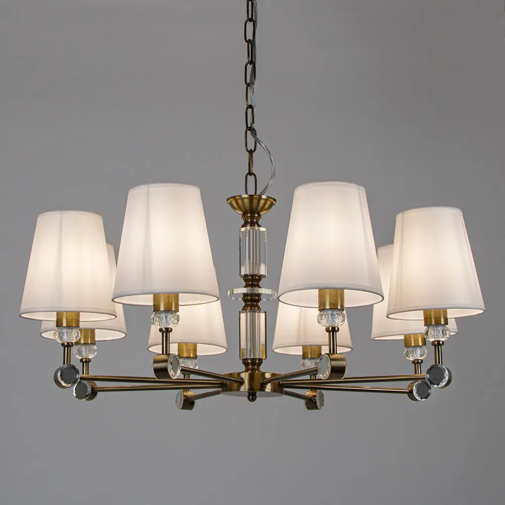 Подвесная люстра Arte Lamp A4093LM-8AB создана для ценителей классического стиля. Её дизайн с восемью тканевыми плафонами белого цвета и изящной арматурой под бронзу придает интерьеру атмосферу утонченности. Плафоны направлены вверх, создавая мягкое и комфортное освещение, идеальное для гостиной или столовой. Модель крепится на крюк и рассчитана на использование ламп накаливания. Долговечность изделия подтверждается 36-месячной гарантией от итальянского бренда.