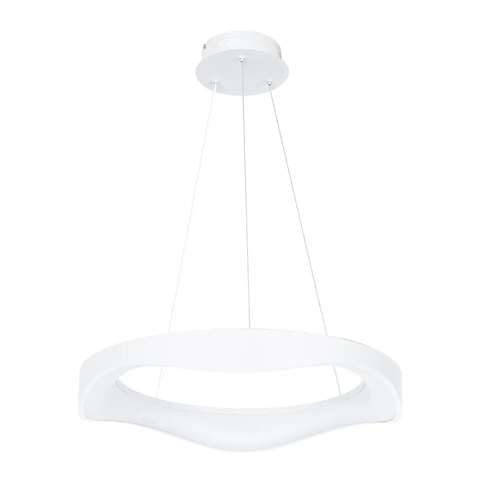 Подвесная люстра Arte Lamp с современным дизайном и чистыми линиями. Пять белых акриловых плафонов, направленных вниз, создают равномерное и комфортное освещение. Металлическая арматура белого цвета гармонично дополняет общую композицию. Модель использует светодиодные лампы и комплектуется удобным пультом дистанционного управления для смены интенсивности света. Люстра крепится на потолок при помощи планки, идеально вписываясь в интерьеры в современном стиле.