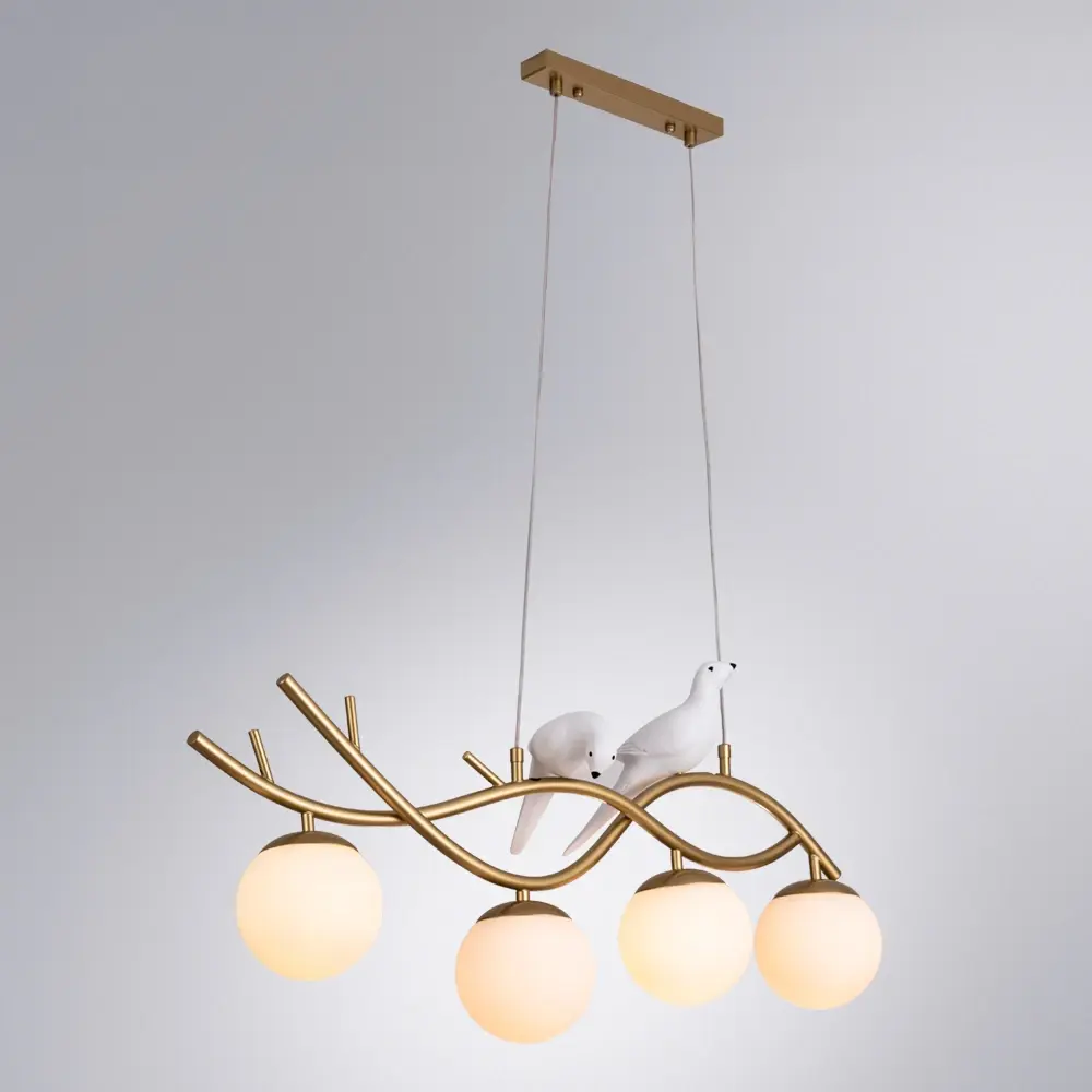 Люстра A3422SP-4GO от Arte Lamp создает элегантное и равномерное освещение. Четыре матовых стеклянных плафона конической формы направляют свет вниз, что идеально для обеденной зоны или гостиной. Золотистая металлическая арматура с четкими геометрическими линиями добавляет интерьеру современный акцент. Модель рассчитана на использование светодиодных ламп и монтируется на потолок. Гарантия производителя составляет 36 месяцев.