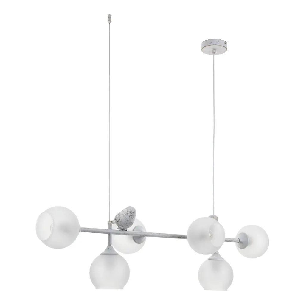 Подвесная люстра Arte Lamp A2150SP-6WG в стиле модерн создает элегантное и равномерное освещение. Шесть матовых стеклянных плафонов, направленных вниз, излучают комфортный мягкий свет. Золотистая металлическая арматура добавляет интерьеру теплых акцентов и гармонично сочетается с большинством отделок. Модель использует современные светодиодные лампы и монтируется на потолок при помощи компактной скобы. Данное решение идеально подходит для организации основного света в гостиной или столовой. Гарантия производителя составляет 36 месяцев.