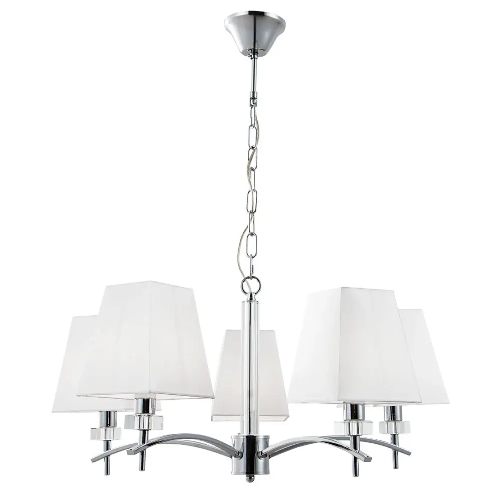 Подвесная люстра Arte Lamp A4098LM-5CC создана для ценителей неоклассического стиля. Пять текстильных плафонов белого цвета, направленных вверх, и изящная хромированная арматура формируют сдержанный и элегантный образ. Модель использует классические или современные светодиодные лампы, создавая комфортное освещение. Благодаря креплению на крюк, люстра легко монтируется на потолок. Итальянский бренд гарантирует высокое качество исполнения и долговечность своей продукции.