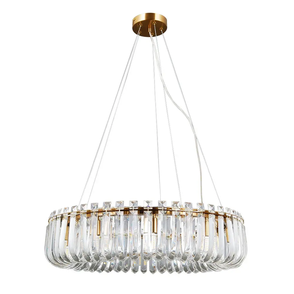 Подвесная люстра от Arte Lamp создает элегантную неоклассическую атмосферу. Десять прозрачных хрустальных плафонов, направленных вниз, обеспечивают яркое и четкое освещение. Медное металлическое основание добавляет интерьеру теплый и благородный акцент. Модель монтируется на планку и идеально подходит для просторных гостиных или столовых. Люстра работает со светодиодными лампами и сопровождается расширенной гарантией производителя 36 месяца.