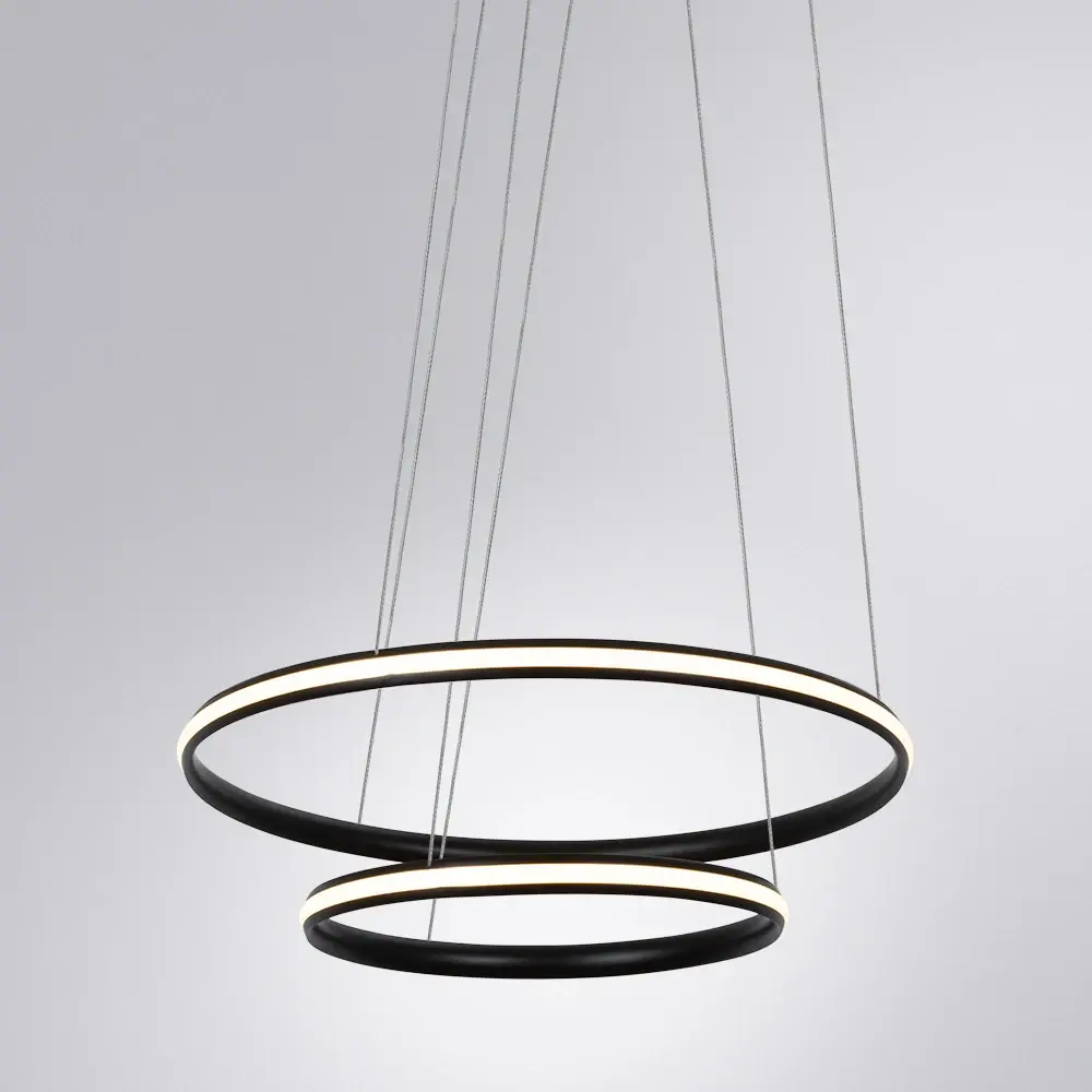Подвесная люстра Arte Lamp A2198SP-2BK в современном стиле создает выразительную многоуровневую композицию. Конструкция из черного металла с направленными в стороны элементами позволяет организовать равномерное освещение. Модель использует светодиодные лампы и комплектуется пультом дистанционного управления для комфортной регулировки. Крепление на планке обеспечивает надежный монтаж на потолок. Гарантия производителя составляет 36 месяцев.