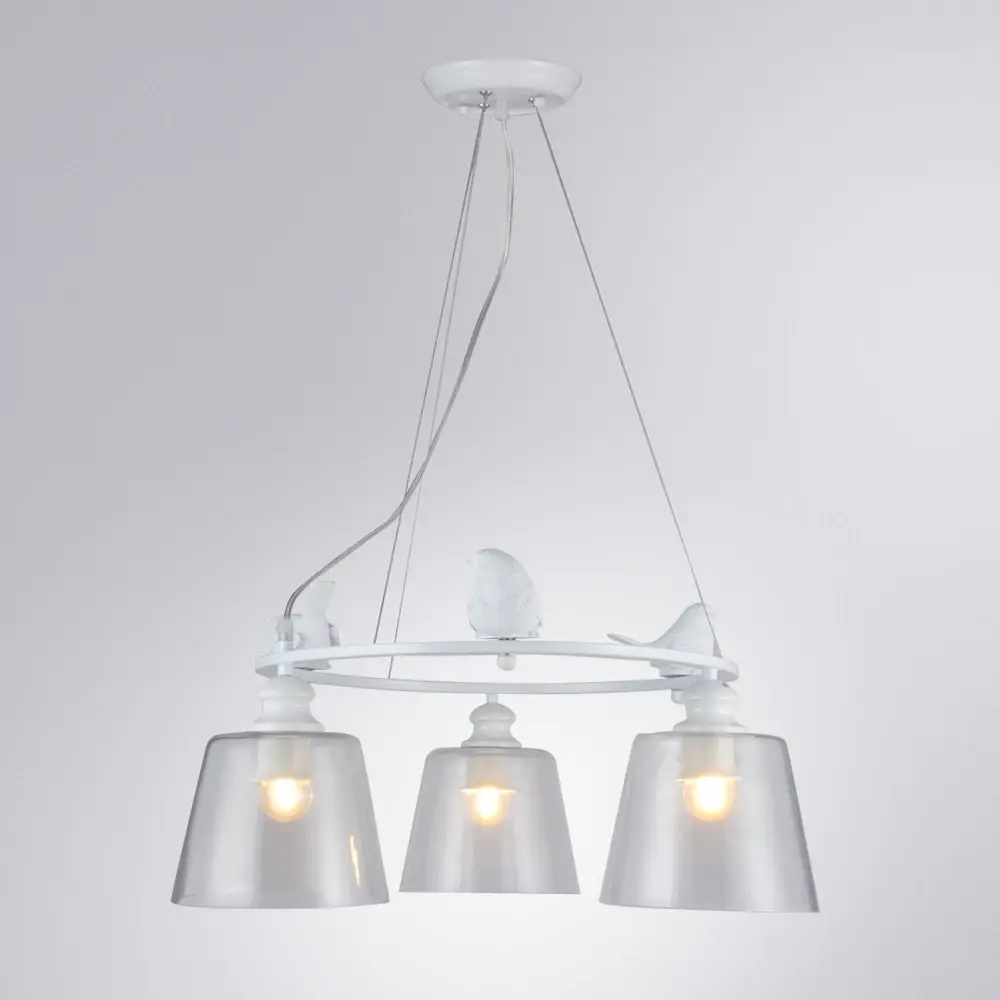 Подвесная люстра Arte Lamp A4289LM-3WH в стиле прованс создаст в вашей комнате мягкое и уютное освещение. Прозрачные стеклянные плафоны в форме колокольчиков направляют свет вниз, создавая четкие световые акценты. Белая арматура из металла и полимера гармонично дополняет общую легкую конструкцию. Модель использует современные светодиодные лампы и крепится на стандартную планку. Эта люстра станет изящным дополнением интерьера, наполненного духом французской деревни. Гарантия производителя составляет 36 месяцев.