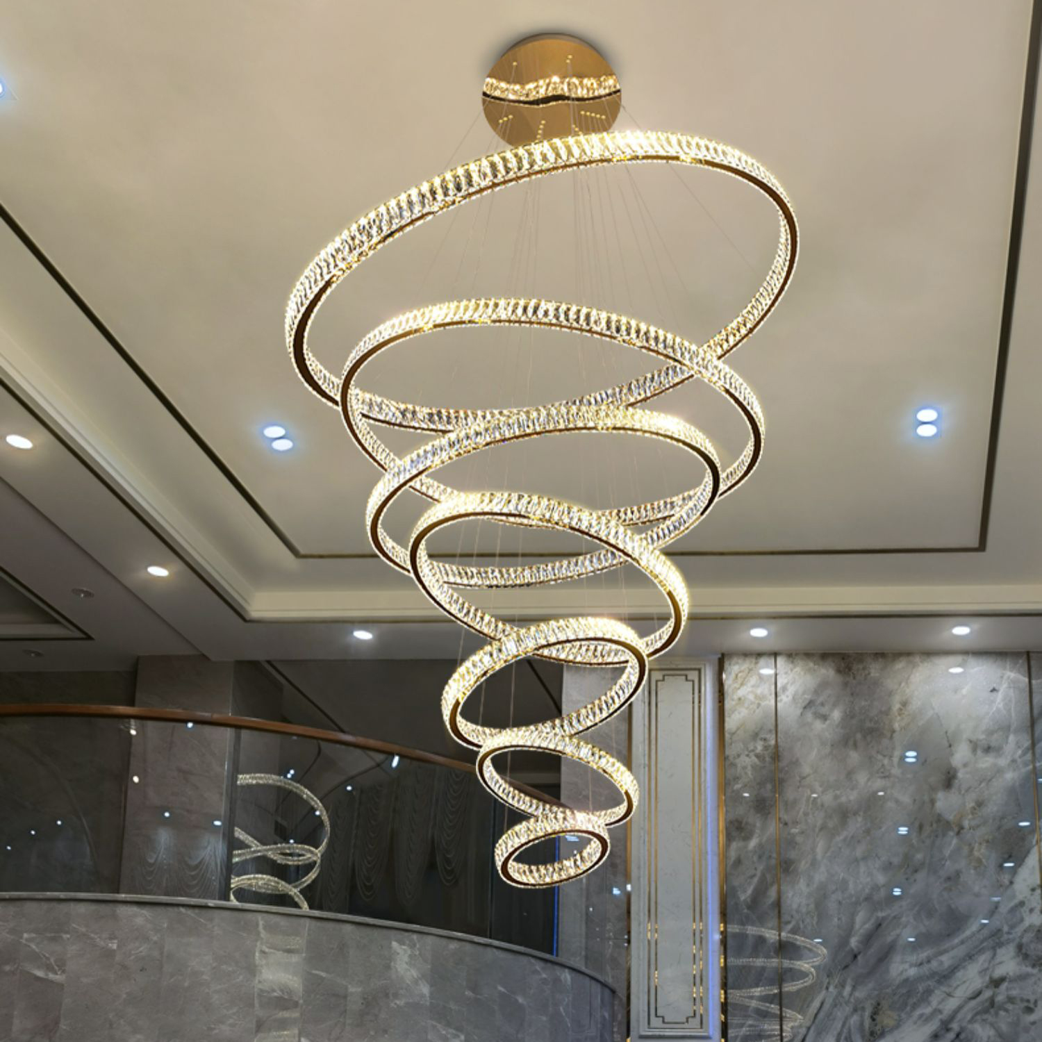Эта потрясающая люстра имеет уникальный дизайн, который непременно привлечет внимание всех гостей. Она состоит из семи круглых плафонов различных размеров, выполненных из высококачественного материала, что придает ей прочность и долговечность. Каждый плафон украшен кристаллами, которые прекрасно переливаются под воздействием света, создавая волшебную атмосферу и добавляя шик в ваш интерьер.