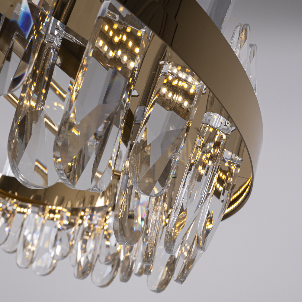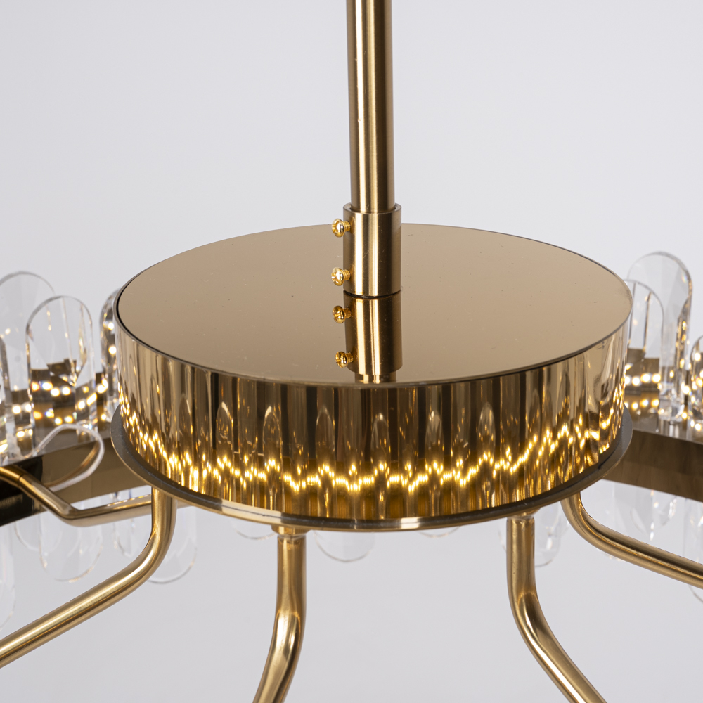 Эта люстра имеет диаметр 80 см, что делает ее идеальным выбором для помещений среднего и большого размера. Она оснащена 6 плафонами из прозрачного стекла, которые создают прекрасное рассеянное освещение, наполняющее комнату мягким и приятным светом.