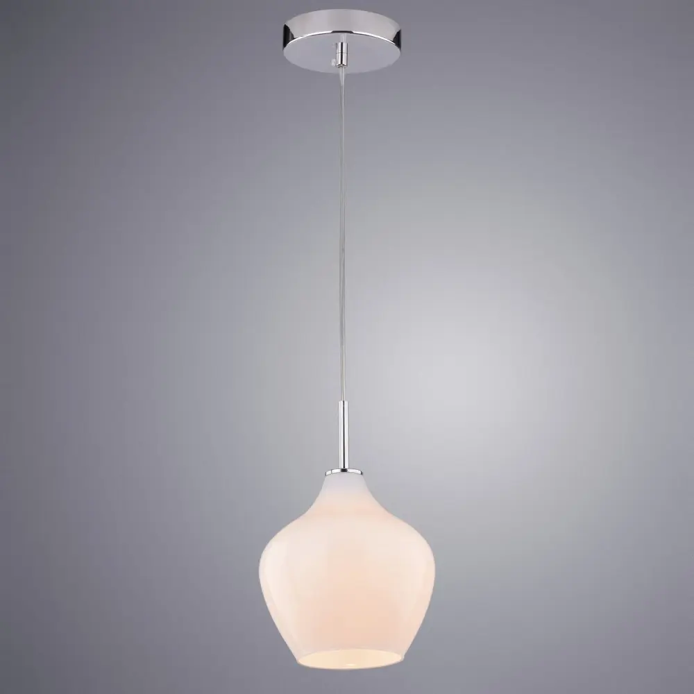 Светильник A4283SP-1CC серии . Хорошо впишется в любой интерьер. Размеры 16x16x25 cm. Диаметр 16 cm Параметры пылевлагозащиты IP — 20. Форма конусная. Плафон стеклянный белого цвета, а материал/цвет арматуры металл/хром. Использует лампу с цоколем E14. Площадь освещения охватывает 2 m2. Идеально подходит для кухни. Страна происхождения бренда — ИТАЛИЯ.