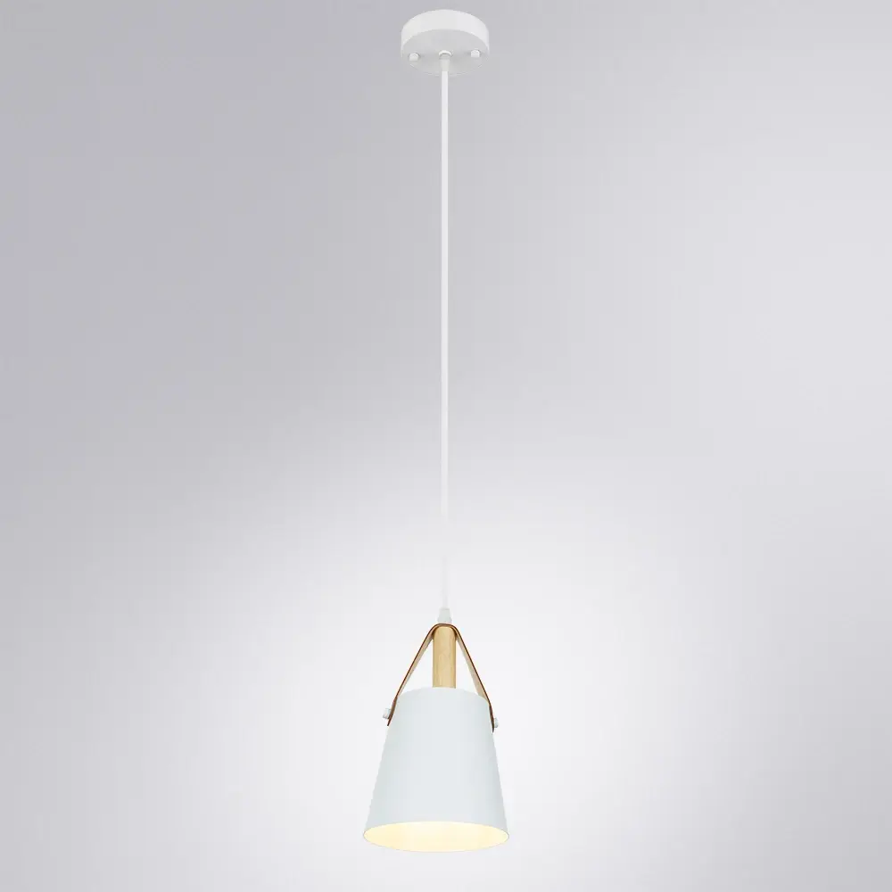 Подвесной светильник Arte Lamp A7032SP-1WH создает акцентное направленное освещение. Белый металлический плафон в скандинавском стиле сочетается с теплым деревом в отделке арматуры. Такая комбинация добавляет интерьеру уют и современность. Светильник монтируется на потолок с помощью планки и рассчитан на использование светодиодных ламп. Модель подойдет для освещения обеденной зоны на кухне или рабочего стола. Долговечность изделия подтверждается 36-месячной гарантией от производителя.