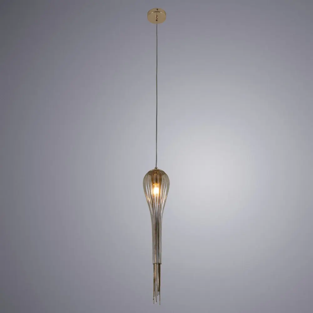 Подвесной светильник Arte Lamp привносит в интерьер динамику и теплоту. Его конструкция из золотистого металла объединяет несколько стеклянных плафонов янтарного оттенка, направленных вниз. Такое решение создает эффект струящегося потока света. Модель в стиле модерн идеально подходит для организации основного освещения в гостиной или столовой. Светильник использует современные светодиодные лампы, гарантируя долгий срок службы и энергоэффективность.