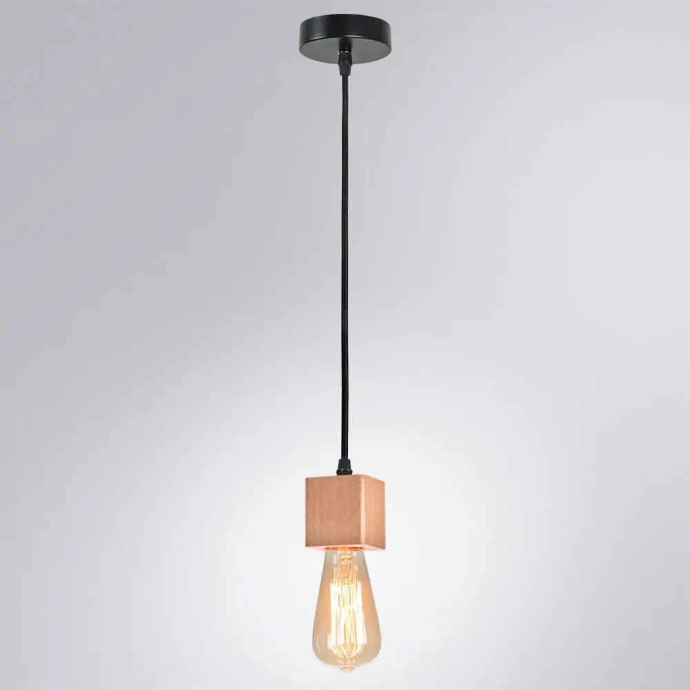 Подвесной светильник Arte Lamp в стиле лофт станет выразительной деталью интерьера. Модель сочетает фактурную деревянную вставку и матовый черный металл, создавая индустриальный шарм. Направленный вниз свет мягко освещает пространство, идеально подходит для зонирования комнаты или создания уютной атмосферы над обеденным столом. Крепление на планке обеспечивает простой и надежный монтаж. Светильник использует классические лампы накаливания, гармонично дополняя концепцию ретро-стиля.