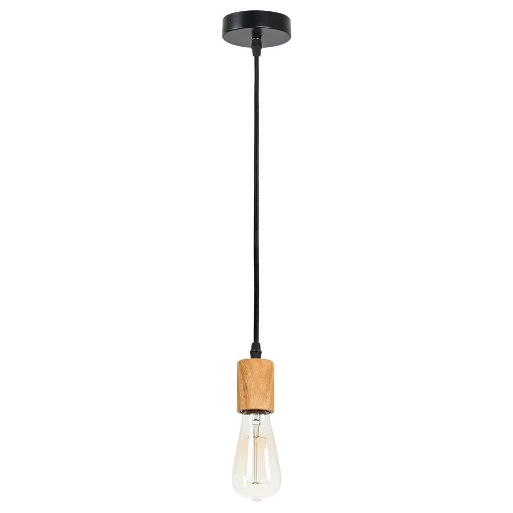 Подвесной светильник в стиле лофт сочетает натуральное дерево и матовый черный металл. Конструкция без плафона с открытой лампой накаливания создает направленный вниз свет и атмосферу уюта. Модель монтируется на потолок с помощью длинной планки, что обеспечивает надежное крепление. Такой светильник станет выразительной деталью в интерьере гостиной или кухни. Гарантия производителя составляет 36 месяца.