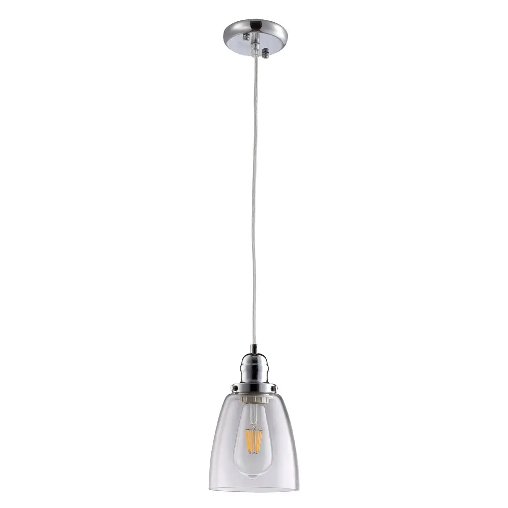 Подвесной светильник Arte Lamp A9387SP-1CC в стиле лофт. Прозрачный стеклянный плафон цилиндрической формы направляет свет вниз, создавая четкую область освещения. Хромированная металлическая арматура добавляет современную индустриальную ноту. Модель монтируется на потолок с помощью планки и использует светодиодные лампы. Решение для столовой зоны, кухни или гостиной с характером.
