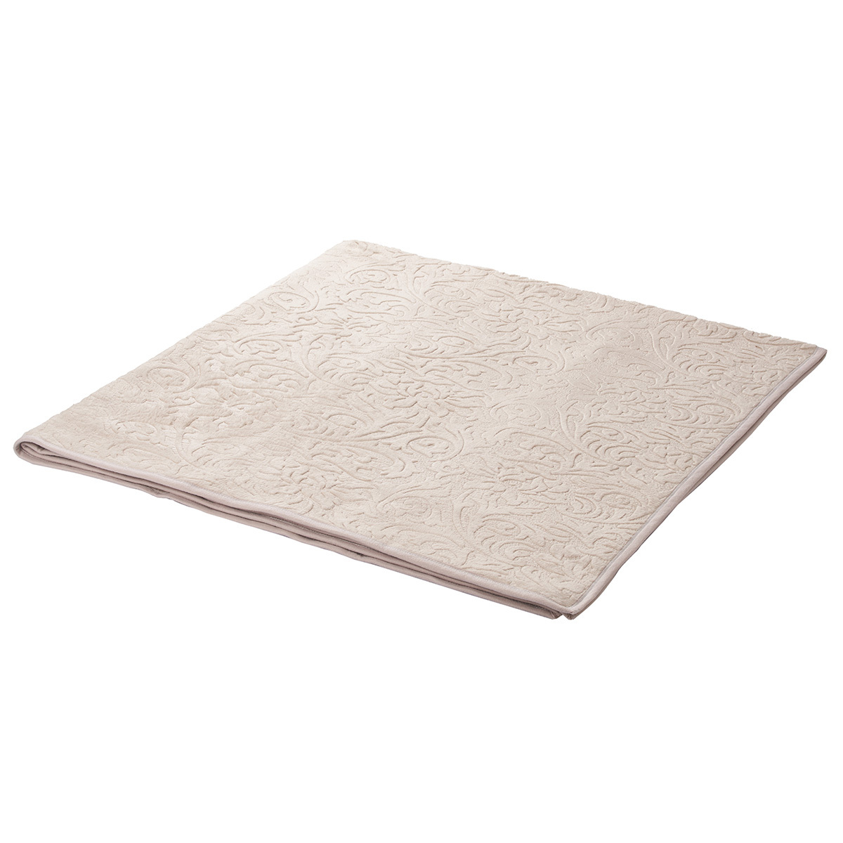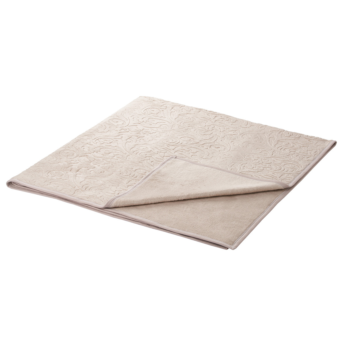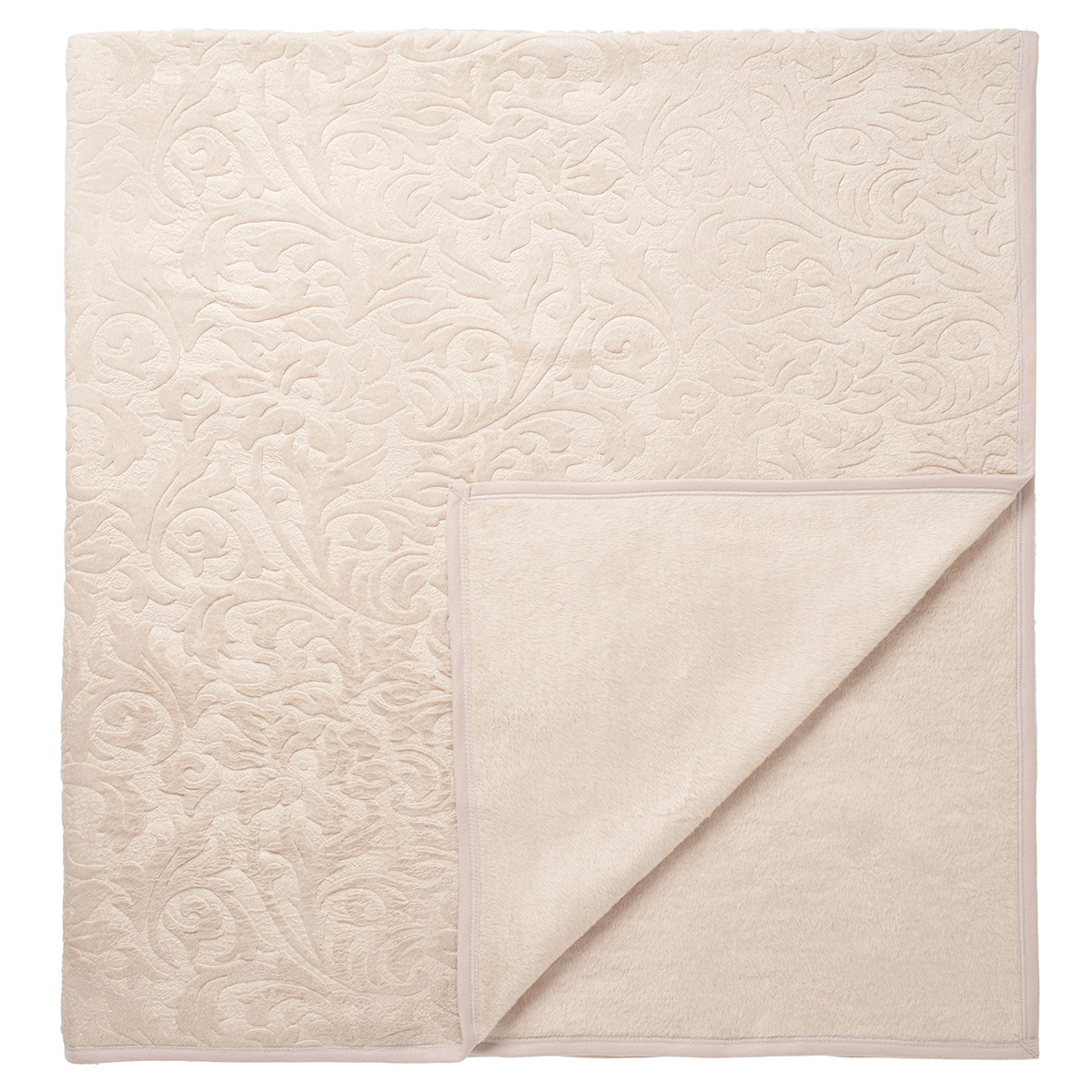 Выбитый изысканный флористический орнамент на покрывале переливается роскошными золотисто-бежевыми цветами.