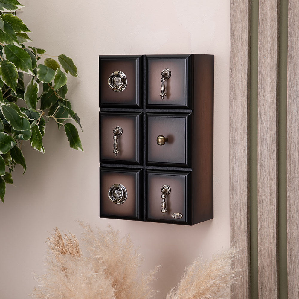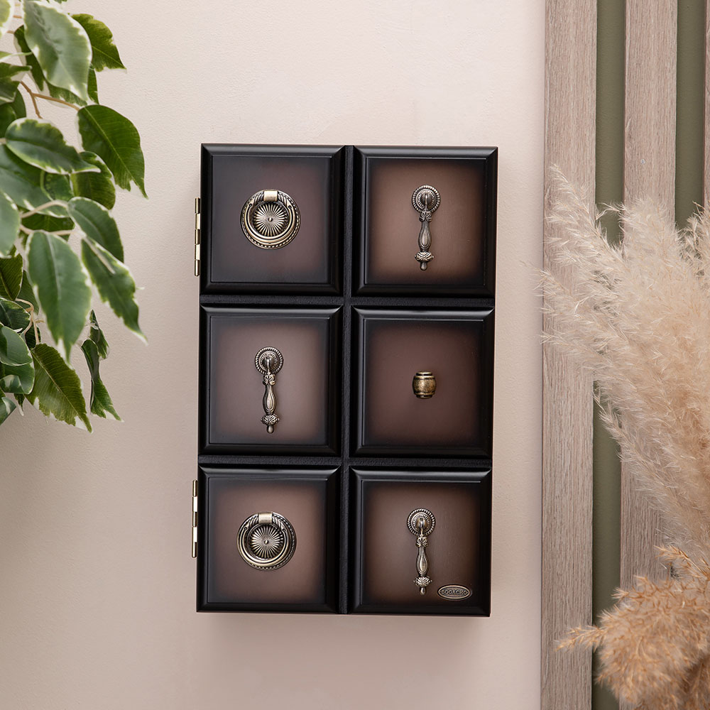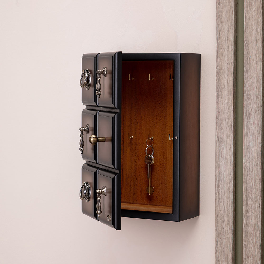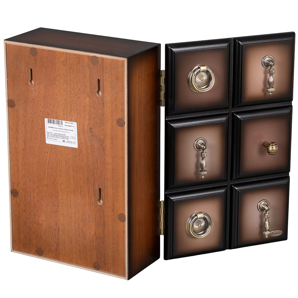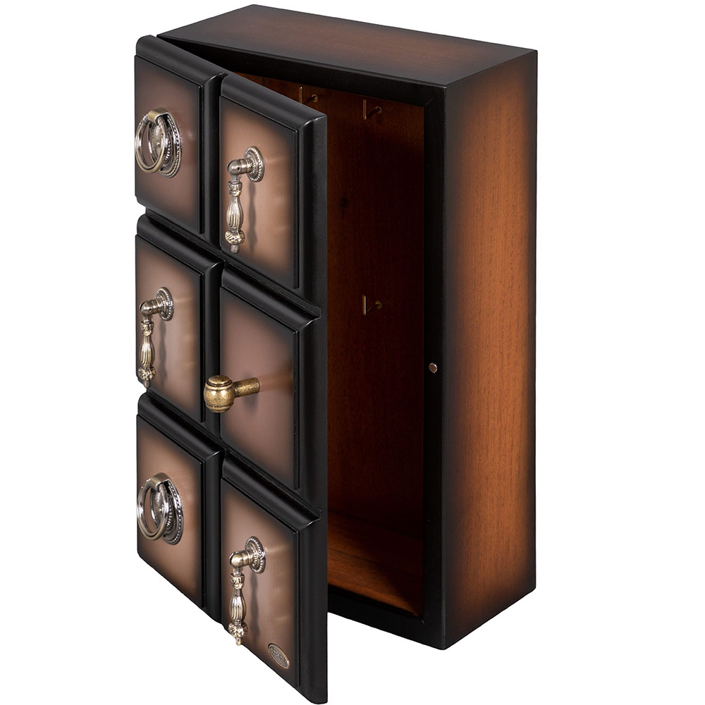 Необходимый предметНастенная ключница - невероятно удобная и практичная вещь для дома. Она станет ярким акцентом прихожей, важным элементом декора. Оригинальные ключницы неизменно привлекают внимание, привносят в интерьер изюминку, придают ему уникальность. Эстетика и практичностьКлючница «Пандора» привлекает внимание своей необычной расцветкой и незаурядностью фурнитуры. Все хочется подробно рассмотреть, потрогать, открыть, чтобы понять: это не только великолепно выполнено с эстетической точки зрения, но и безусловно практично и удобно в использовании. Возможность для импровизацииКоллекция предусматривает не только несколько вариантов материалов изготовления, но и богатейшую цветовую гамму - более 20 цветов. Можно подобрать однотонный вариант или выбрать подходящее сочетание, которое без труда впишется в уже существующую цветовую палитру помещения.