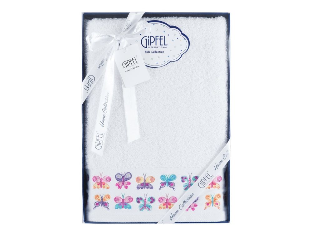 Полотенце Gipfel BUTTERFLY 40762. Большое полотенце из детской коллекции. Размер 70х140 см. Полотенце сделано из 100% хлопка, плотность нити 480 гр/м2. Махровое полотенце невероятно мягкое и выполнено из натурального материала белого цвета с вышивкой бабочек по краю. Упаковано в подарочную фирменную коробку.