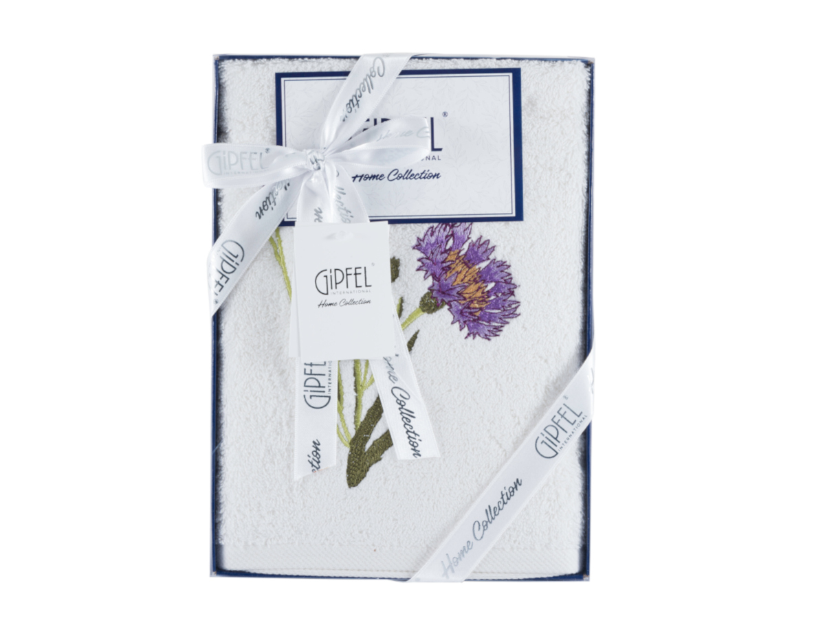 Полотенце GIPFEL CLOVE 40767. Размер 50x100 см. Полотенце белого цвета с вышитым васильком сделано из 100% хлопка, плотность нити 480гр/м2. Махровое полотенце невероятно мягкое и сделано из натурального материала. Упаковано в подарочную коробку.