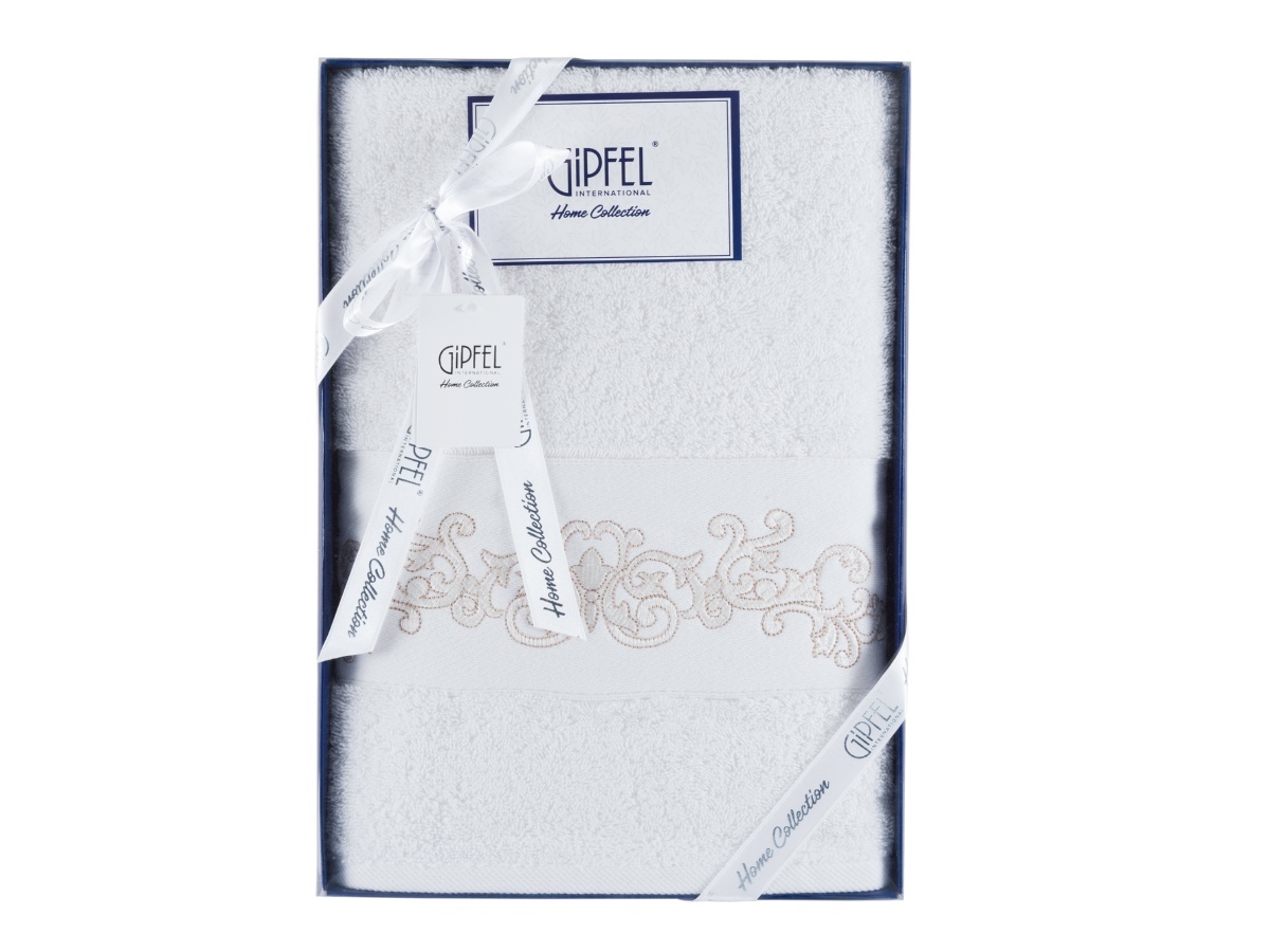 Полотенце Gipfel DAMASK 40782. Размер 70x140 см. Полотенце сделано из 100% хлопка, плотность нити 480 гр/м2. Махровое полотенце невероятно мягкое и выполнено из натурального материала белого цвета с вышитым цветочным орнаментом. Большой размер позволяет использовать полотенце и для ребенка, и для взрослого после душа.Полотенце упаковано в подарочную коробку.