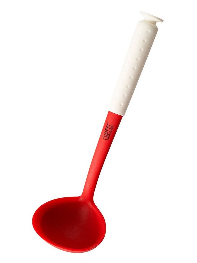 Половник Gipfel LOLLIPOP 0234. Размер 28,5х8,6х7,5 см. У половника силиконовая ручка, что исключает скольжение. Рабочая часть сделана из нейлона, поэтому можно использовать его с антипригарной посудой.