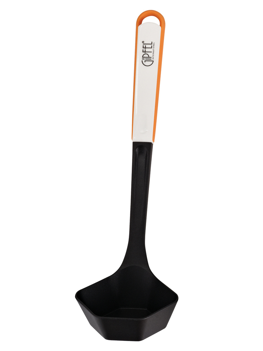 Половник Gipfel MINTAKA 6480. Размер 32,5х9 см. Высота черпака 3 см, объем 75 мл. Черпак сделан из нейлона, что позволит использовать его с посудой, имеющей антипригарное покрытие. Ручка пластиковая с петлей для подвешивания.