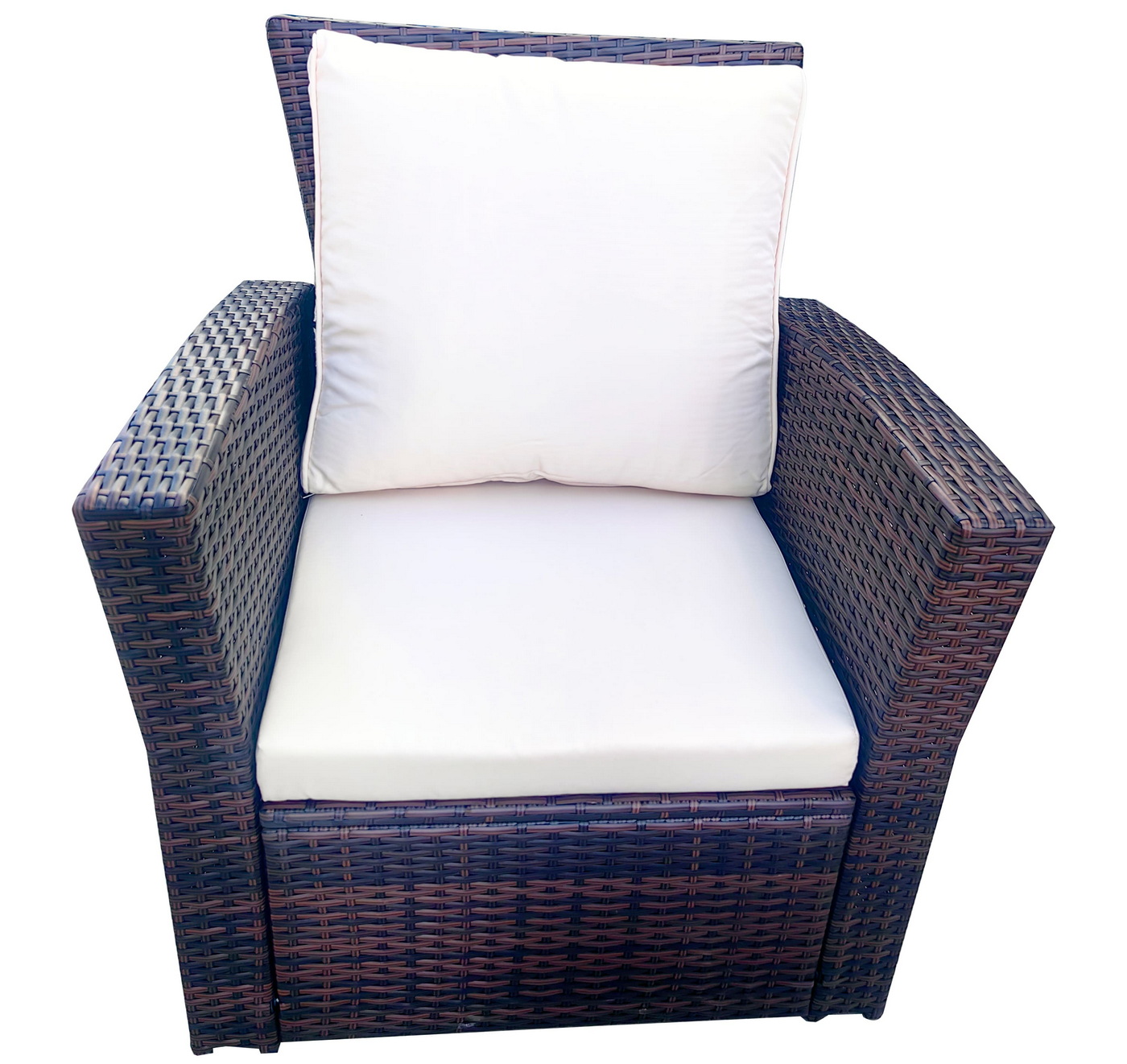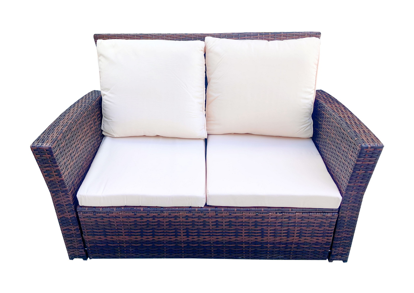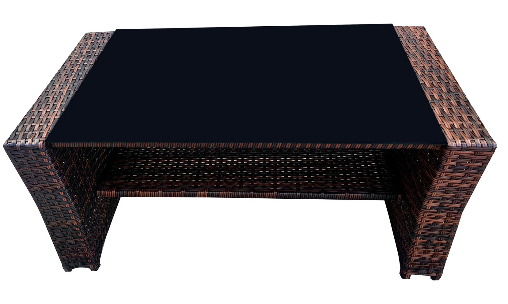 В основе мебели - стальной каркас и плоский искусственный ротанг. Каркас оплетен с помощью ручного метода и представлен в коричневом цвете.