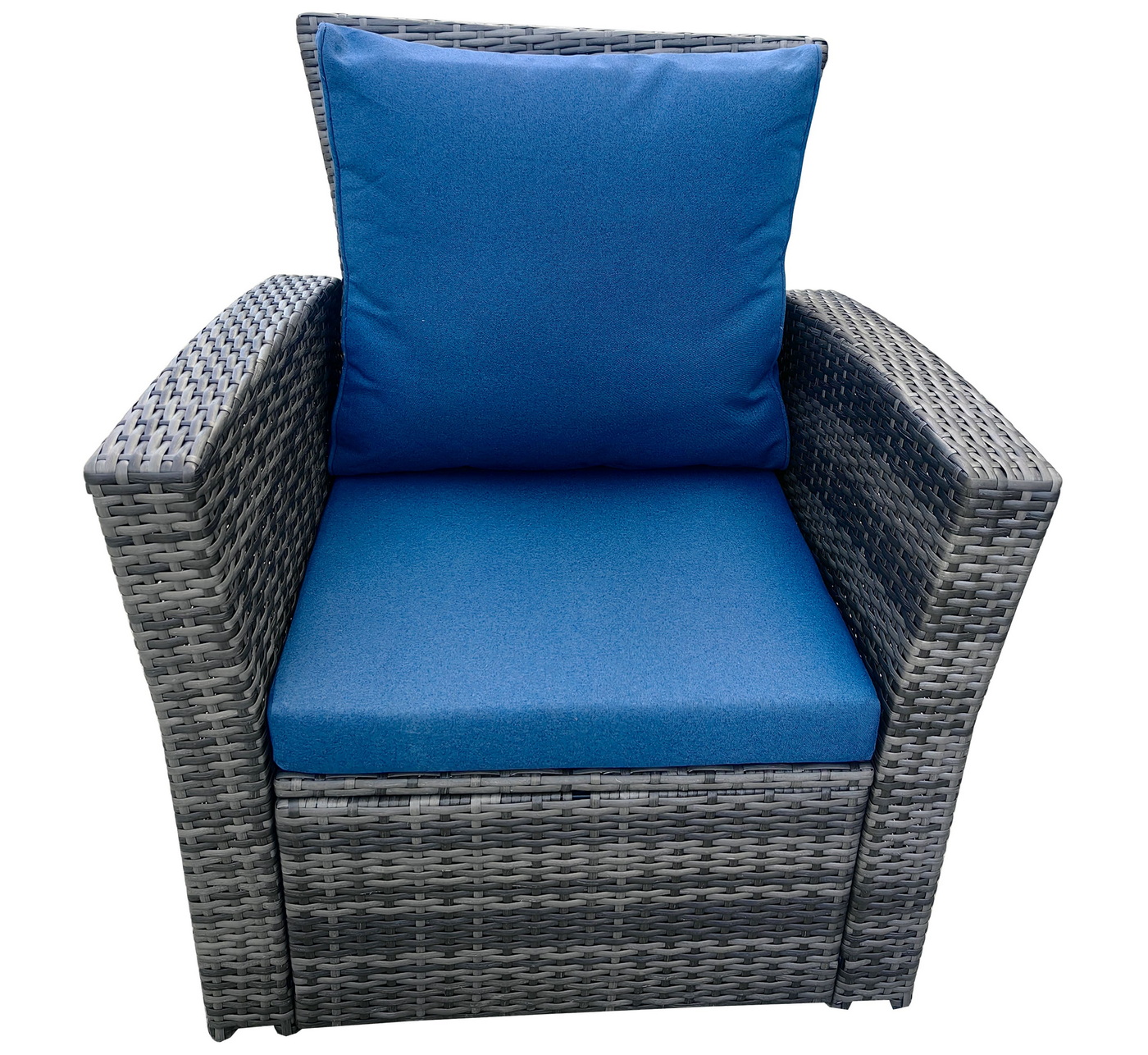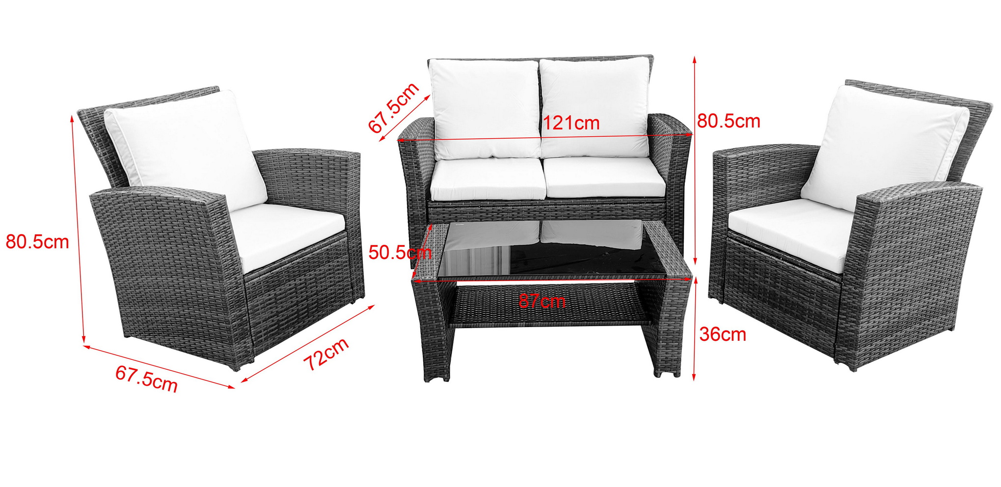 В основе мебели - стальной каркас и плоский искусственный ротанг. Каркас оплетен с помощью ручного метода и представлен в сером цвете.
