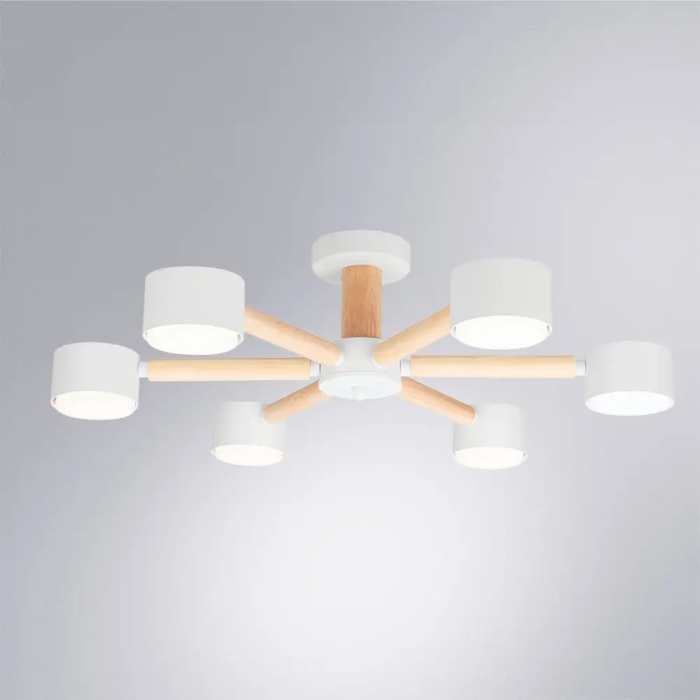 Потолочная люстра Arte Lamp A1624PL-6WH сочетает современный дизайн с натуральными материалами. Белые плафоны из металла и пластика направляют свет вниз, создавая комфортное освещение. Теплоту в облик модели придает деревянная арматура. Люстра монтируется на планку и подходит для светодиодных или галогенных ламп. Модель гармонично впишется в интерьер, выдержанный в современной стилистике. Гарантия производителя составляет 36 месяцев.