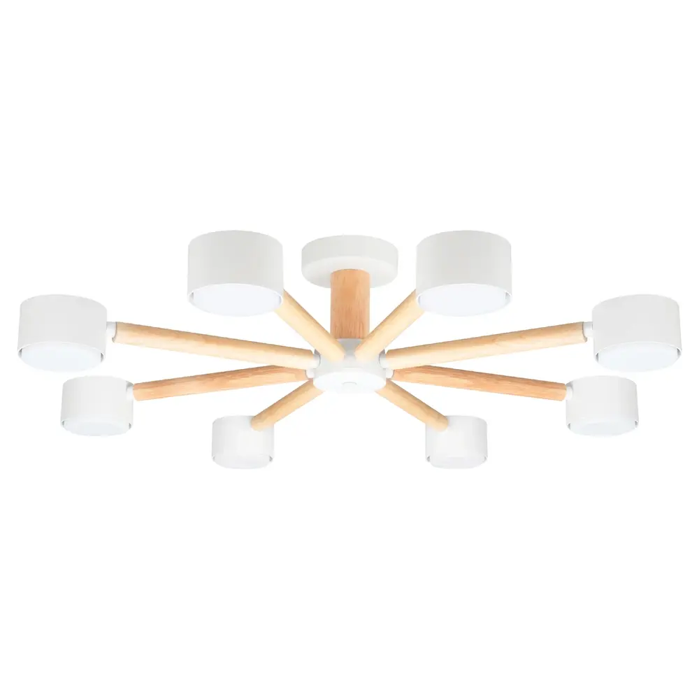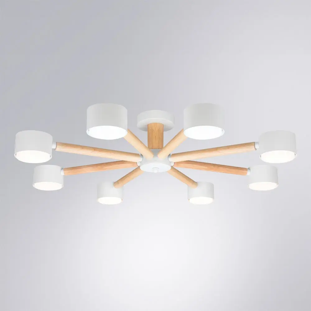 Потолочная люстра Arte Lamp A1624PL-8WH сочетает современный дизайн с натуральными материалами. Белые плафоны из металла и пластика направляют свет вниз, создавая комфортное освещение. Теплоту в интерьер добавляет деревянная арматура, окрашенная в белый цвет. Модель подходит для галогенных или светодиодных ламп и монтируется на планку. Итальянский бренд обеспечивает надежность и гарантию 36 месяцев.