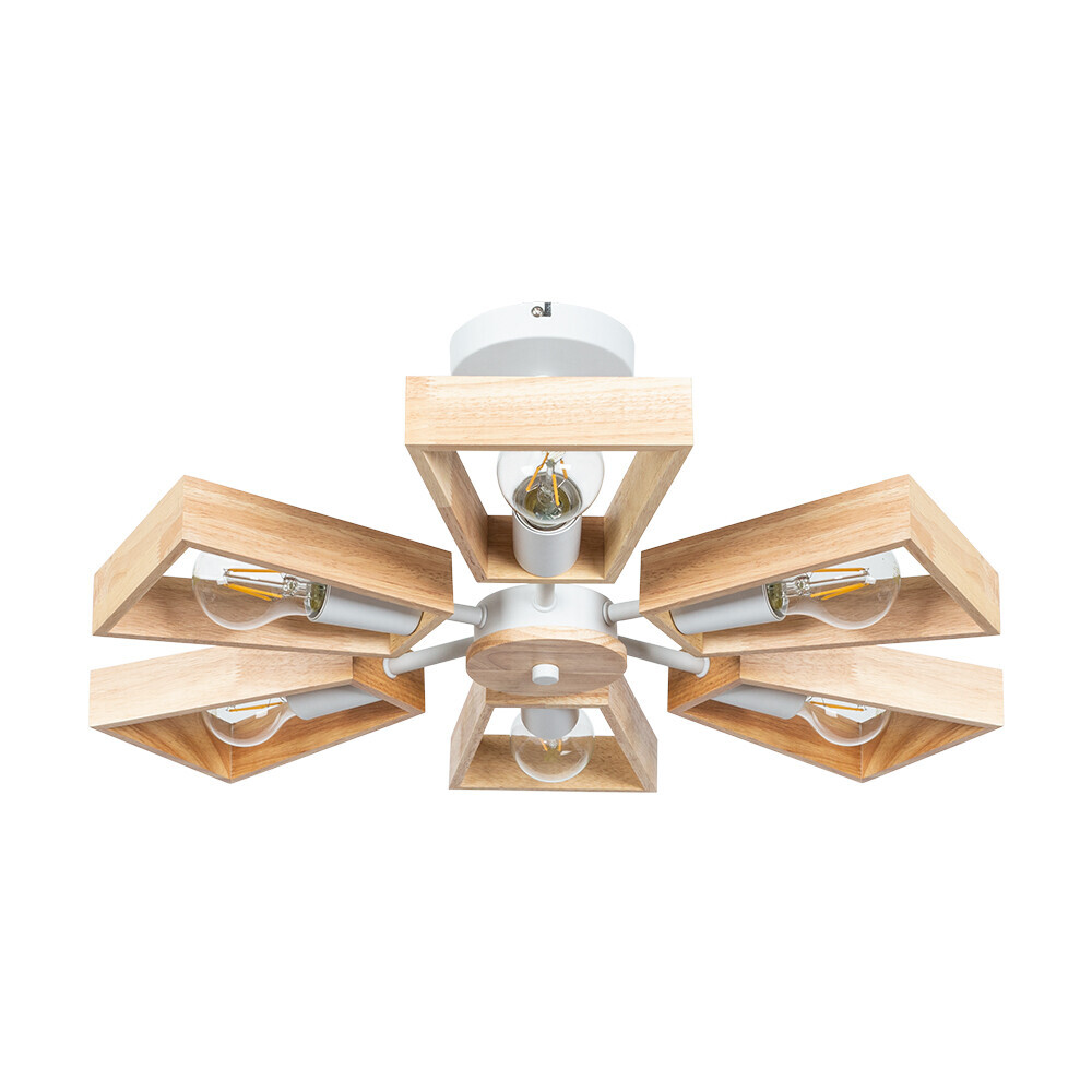 Потолочная люстра Arte Lamp A8030PL-6WH в стиле лофт сочетает натуральное дерево и современный металл. Шесть бежевых плафонов из дерева направлены в стороны, создавая равномерное и комфортное освещение. Белая металлическая арматура добавляет конструкции выразительности. Модель использует светодиодные лампы (не входят в комплект) и монтируется на потолок. Гарантия производителя — 36 месяцев.