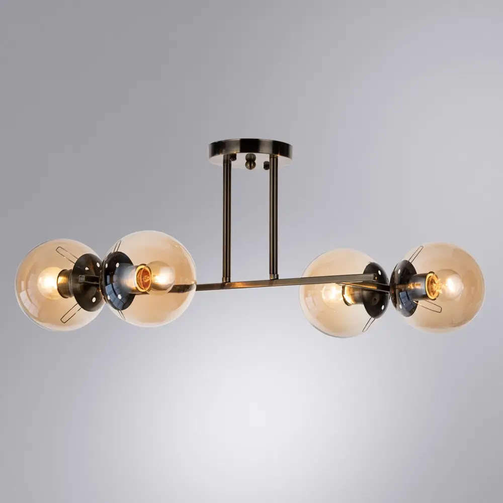 Потолочная люстра Arte Lamp A4059PL-4AB в стиле модерн создаст в вашем интерьере мягкое и комфортное освещение. Модель отличается элегантной конструкцией из металла бронзового оттенка. Плафоны из янтарного стекла, направленные в стороны, обеспечивают равномерное распределение света. Люстра предназначена для использования со светодиодными лампами и монтируется на потолок. Эта модель станет гармоничным акцентом в гостиной или спальне, даря помещению атмосферу уюта.