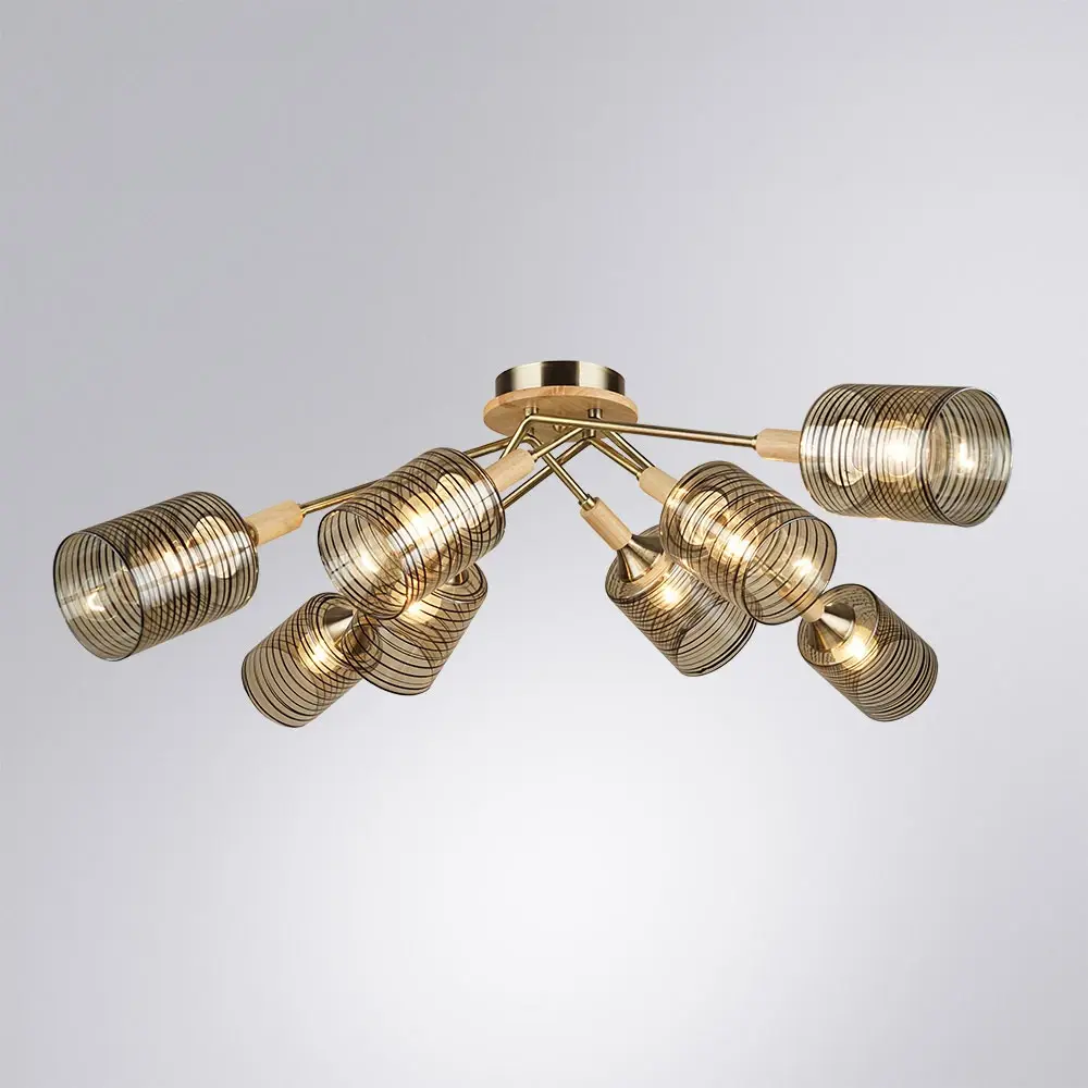 Потолочная люстра Arte Lamp A4536PL-8AB в стиле модерн создаст теплую и уютную атмосферу. Модель с каркасом из металла бронзового оттенка дополнена плафонами из янтарного стекла, направленными в стороны. Такая конструкция обеспечивает комфортное рассеянное освещение, идеальное для гостиной или спальни. Люстра рассчитана на использование ламп накаливания. Сочетание теплого бронзового металла и насыщенного янтарного стекла делает этот светильник стильным акцентом в интерьере.