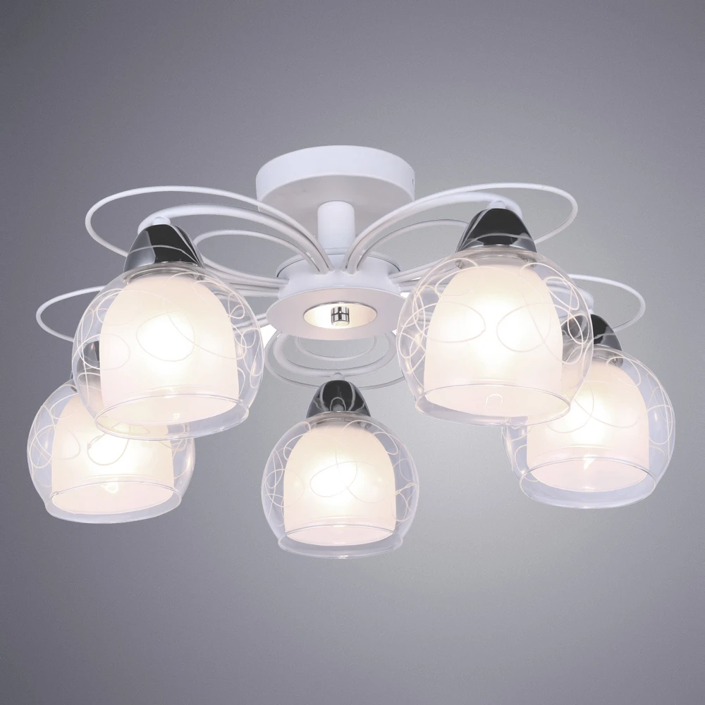 Потолочная люстра Arte Lamp A7585PL-5WH сочетает современный дизайн с четкими геометрическими формами. Прозрачные стеклянные плафоны, направленные вниз, и белая металлическая арматура создают строгий и элегантный образ. Модель идеально подходит для организации основного освещения в помещении. Светильник крепится на планку и рассчитан на использование светодиодных ламп. Лаконичный стиль модерн делает эту люстру универсальным решением для гостиной, кухни или прихожей. Гарантия производителя составляет 36 месяцев.