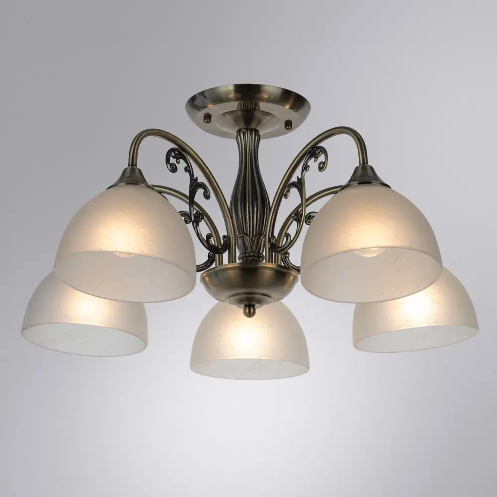 Потолочная люстра Arte Lamp A3037PL-5AB выполнена в классическом стиле. Модель отличается элегантной конструкцией из металла бронзового оттенка, которая дополнена плафонами из белого стекла. Плафоны направлены вниз, создавая комфортное прямое освещение. Люстра предназначена для установки на потолок и использует современные светодиодные лампы. Модель сочетает традиционную эстетику с актуальными технологиями, а также подкреплена расширенной гарантией производителя в 36 месяцев.