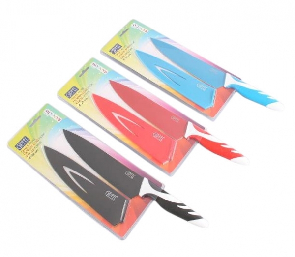 6749 GIPFEL Нож поварской Rainbow 20 см в пластиковом чехле, с защитным покрытием, пластиковая ручка (нерж. сталь), 3 цвета в ассортименте: красный, синий, черный.*