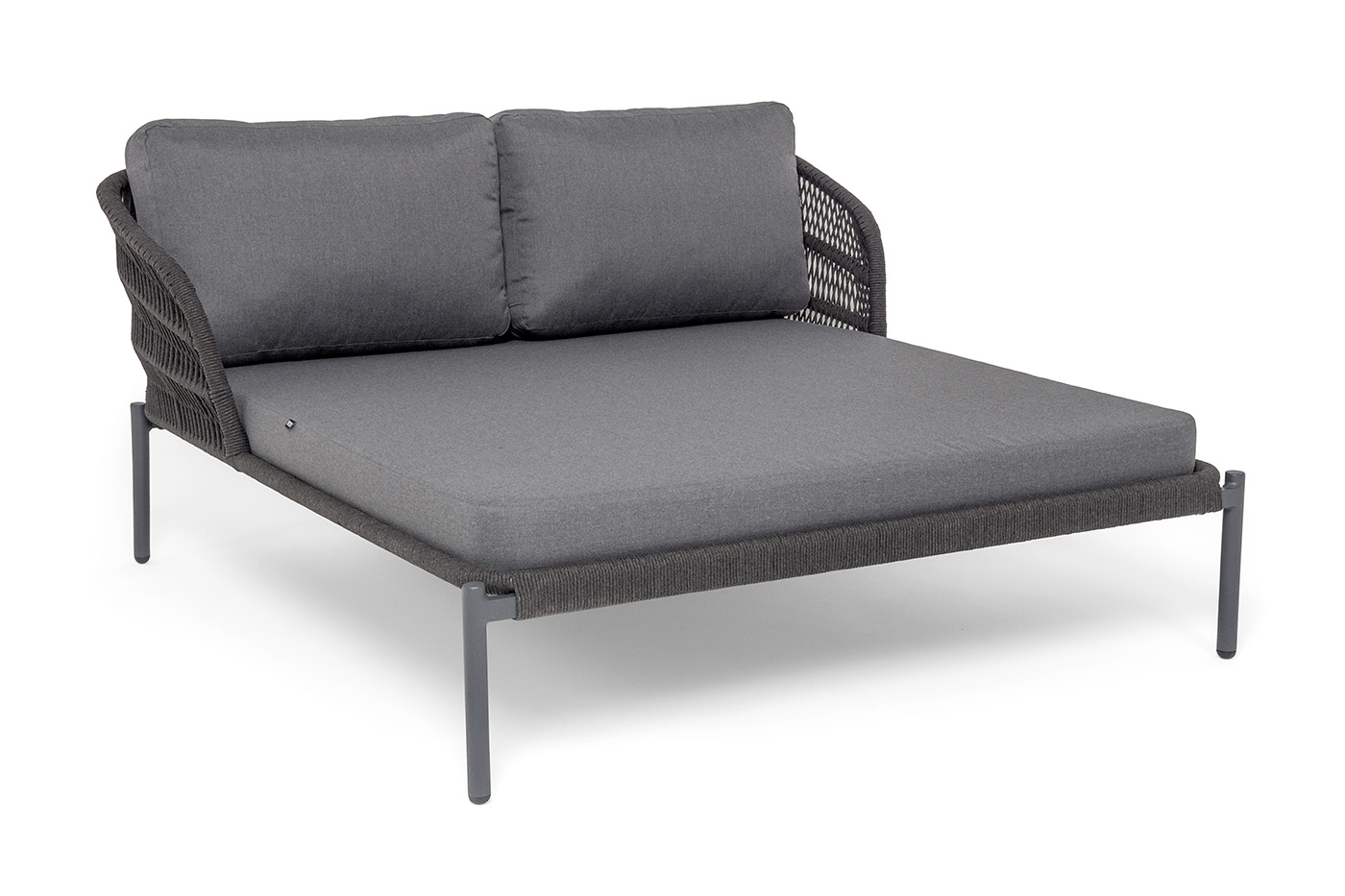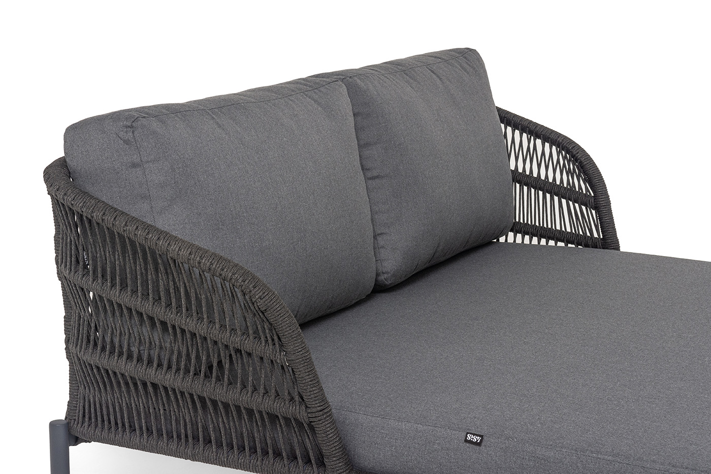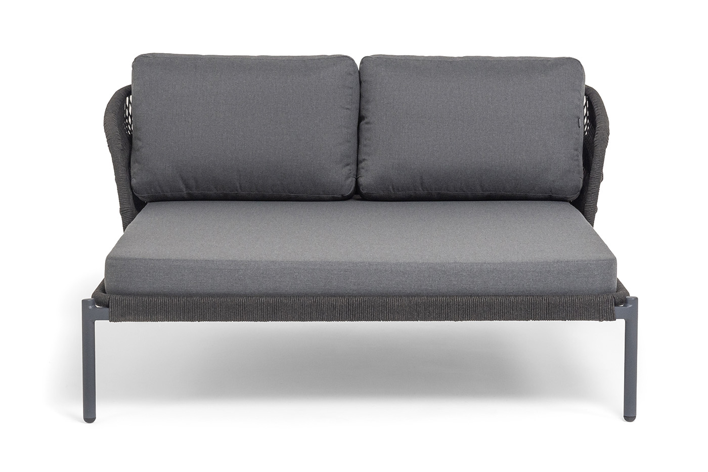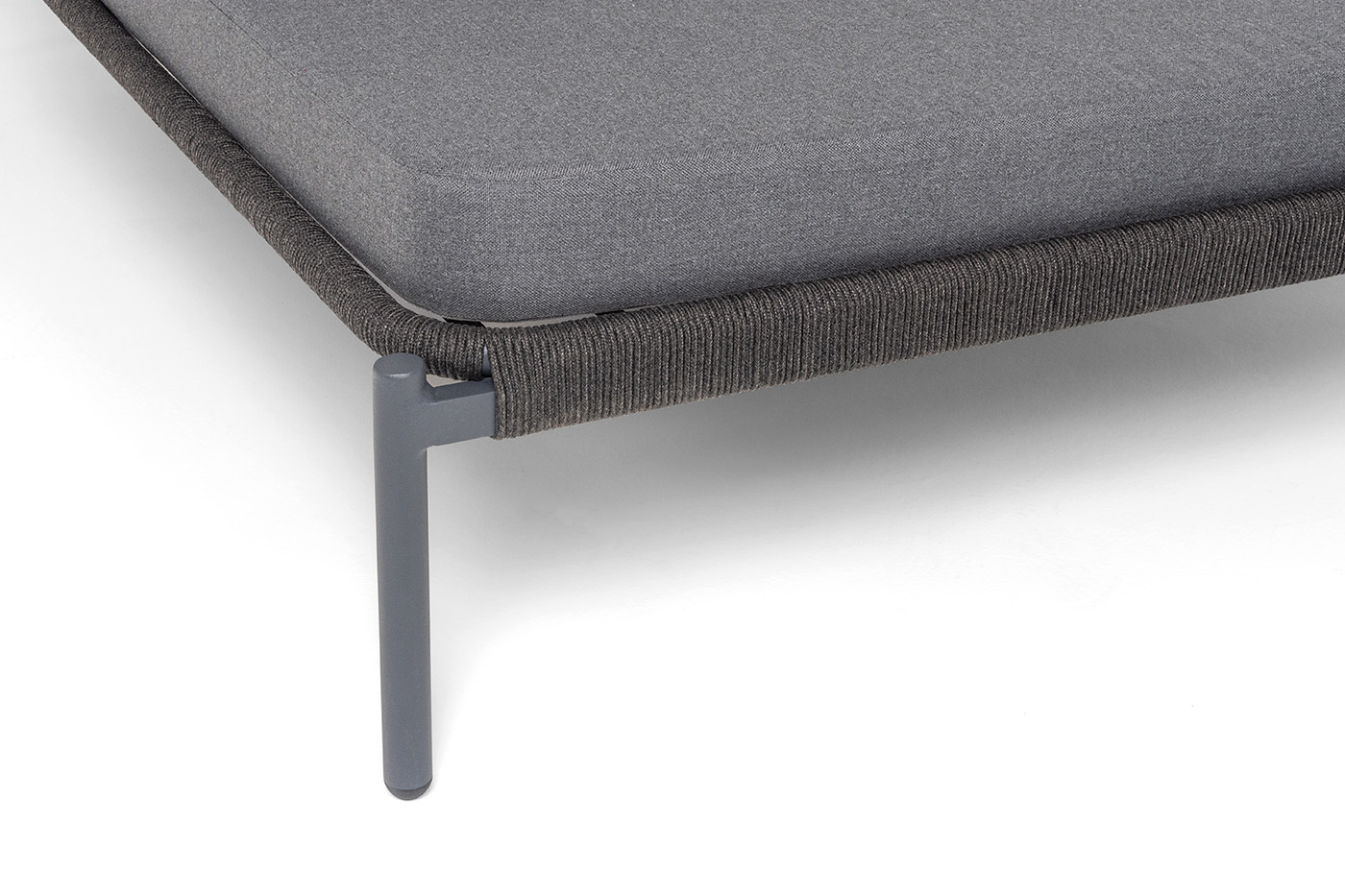 Оплетка боковин выполнена вручную из роупа — эластичных синтетических лент на основе высокопрочных полиэфирных волокон. Темно‑серый оттенок оплетки гармонично сочетается с каркасом, подчеркивая лаконичность дизайна.