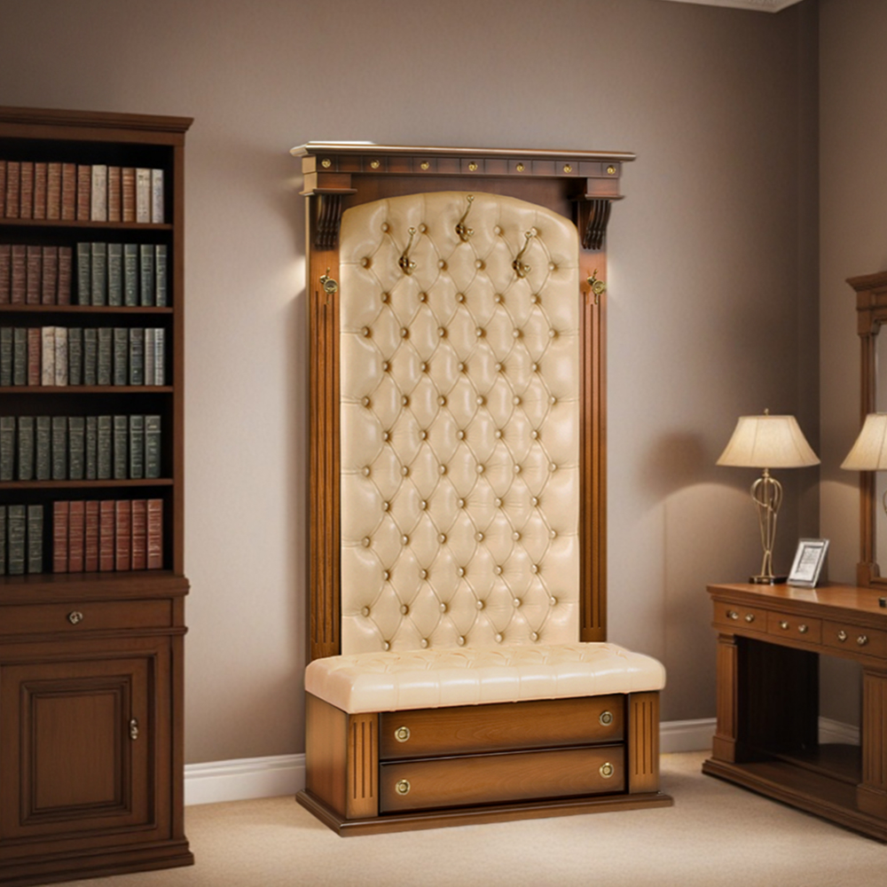 УНИКАЛЬНОСТЬ МЕБЕЛИ ТАУЭРМы тщательно и вдохновлённо работали над внешним видом прихожей Тауэр, чтобы передать эстетику роскошных, уютных и практичных английских домов. Фурнитура выполнена из испанской латуни, отделка – из высококачественной эко-кожи. Шарм придают изысканные каннелюры из массива бука. Тауэр – великолепное произведение искусства, соединение кропотливого труда искусных мастеров и уточнённой фантазии дизайнера.