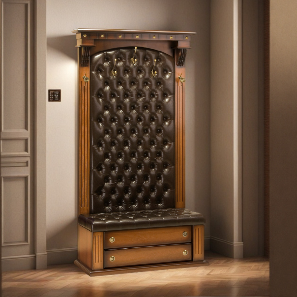Мы тщательно и вдохновлённо работали над внешним видом прихожей Тауэр, чтобы передать эстетику роскошных, уютных и практичных английских домов. Фурнитура выполнена из испанской латуни, отделка – из высококачественной эко-кожи. Шарм придают изысканные каннелюры из массива бука. Тауэр – великолепное произведение искусства, соединение кропотливого труда искусных мастеров и уточнённой фантазии дизайнера.