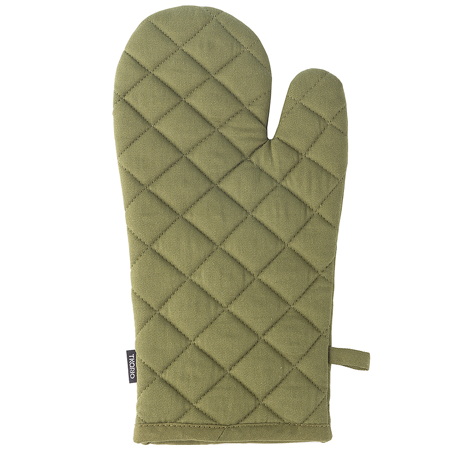 Прихватка-варежка из хлопка оливкового цвета из коллекции Essential – универсальный кухонный аксессуар. Изделие не нагревается и защищает руку при контакте с горячими поверхностями. Внешняя и внутренняя части выполнены из 100% гипоаллергенного хлопка. Наполнитель: полиэстер. Есть удобная петелька для подвешивания.