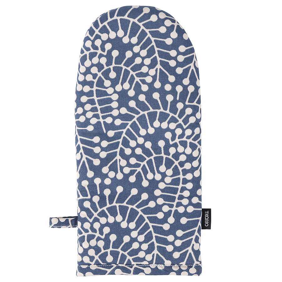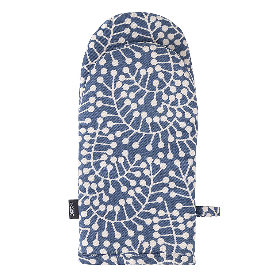 Прихватка-варежка темно-синего цвета с принтом Спелая Смородина из коллекции Scandinavian touch, 14х32 см